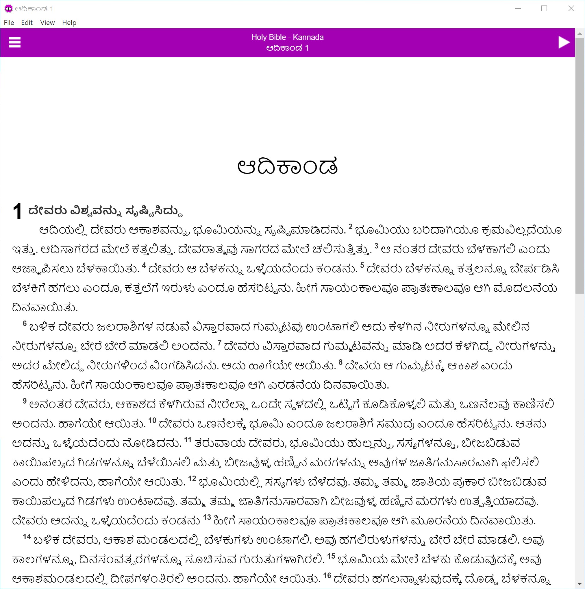 We are proud and happy to release the first version of Kannada Holy Bible in windows for free. This app contains both "Old Testament" and "New Testament". Our effort in bringing you bible in Indian languages. We sincerely hope that this app will rejoice you.