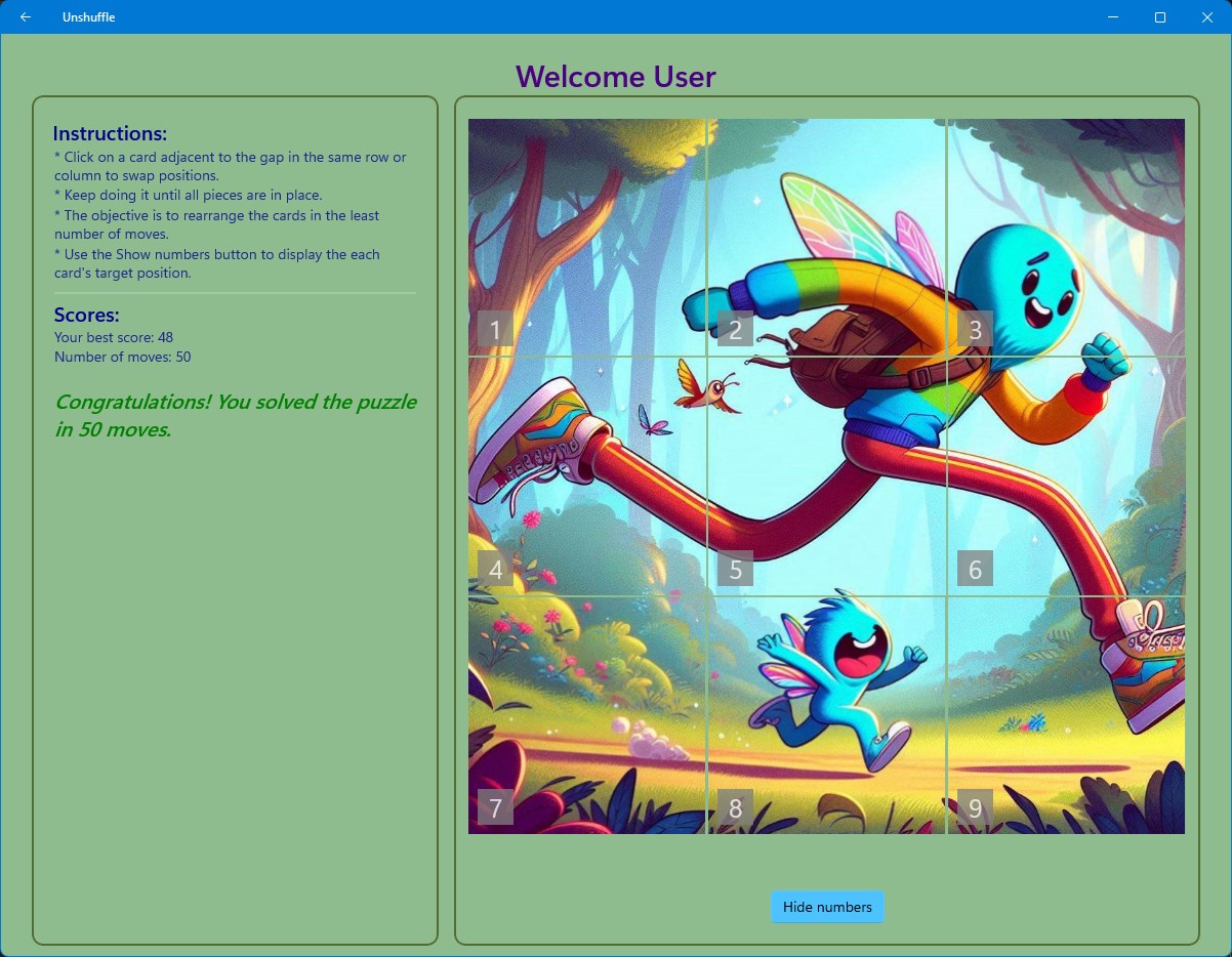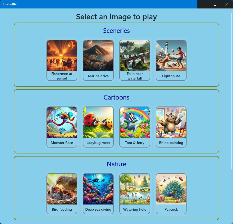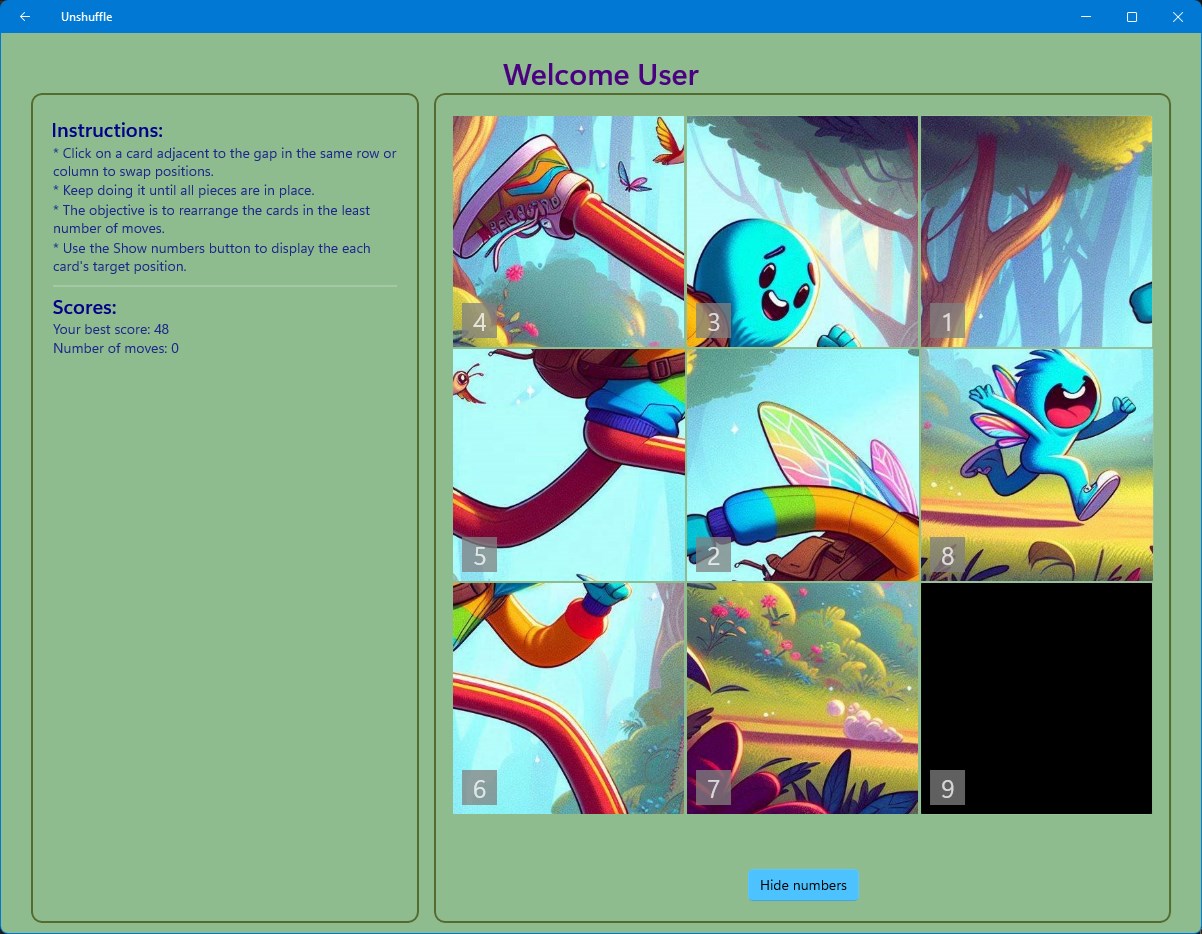 Unshuffle is a puzzle game that lets you rearrange jumbled pieces of an image.