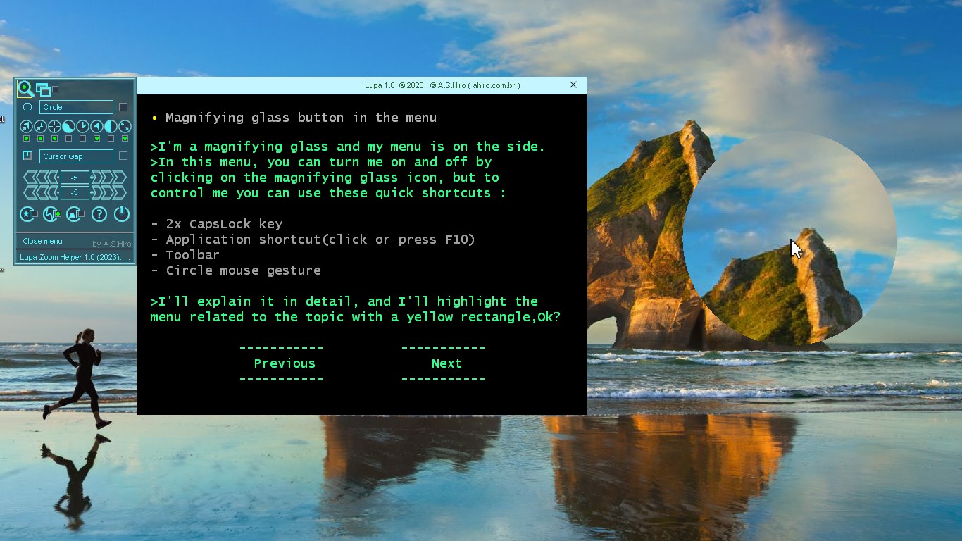 Configurable in shape, size, magnification, time, behavior, positioning and transparency.
