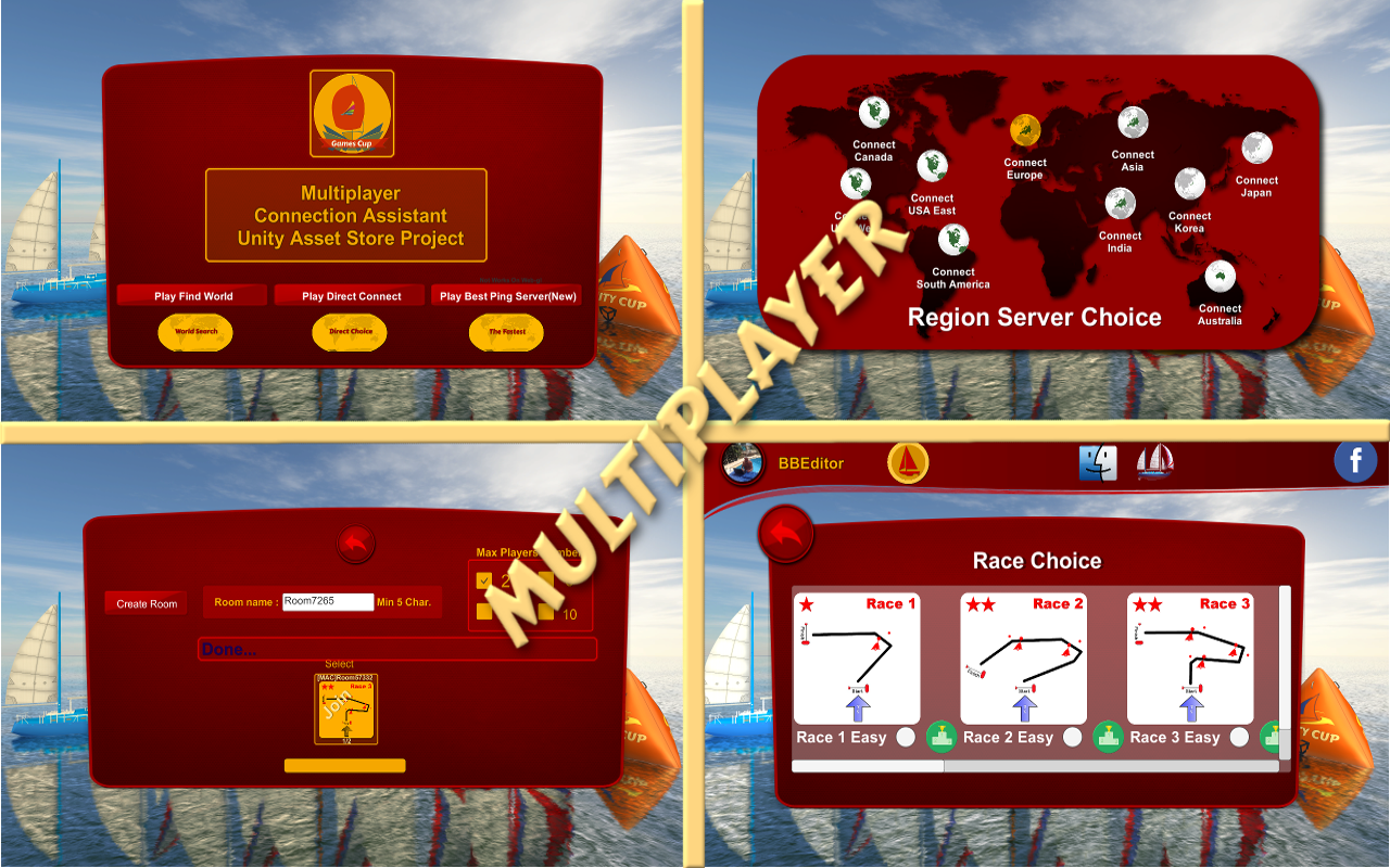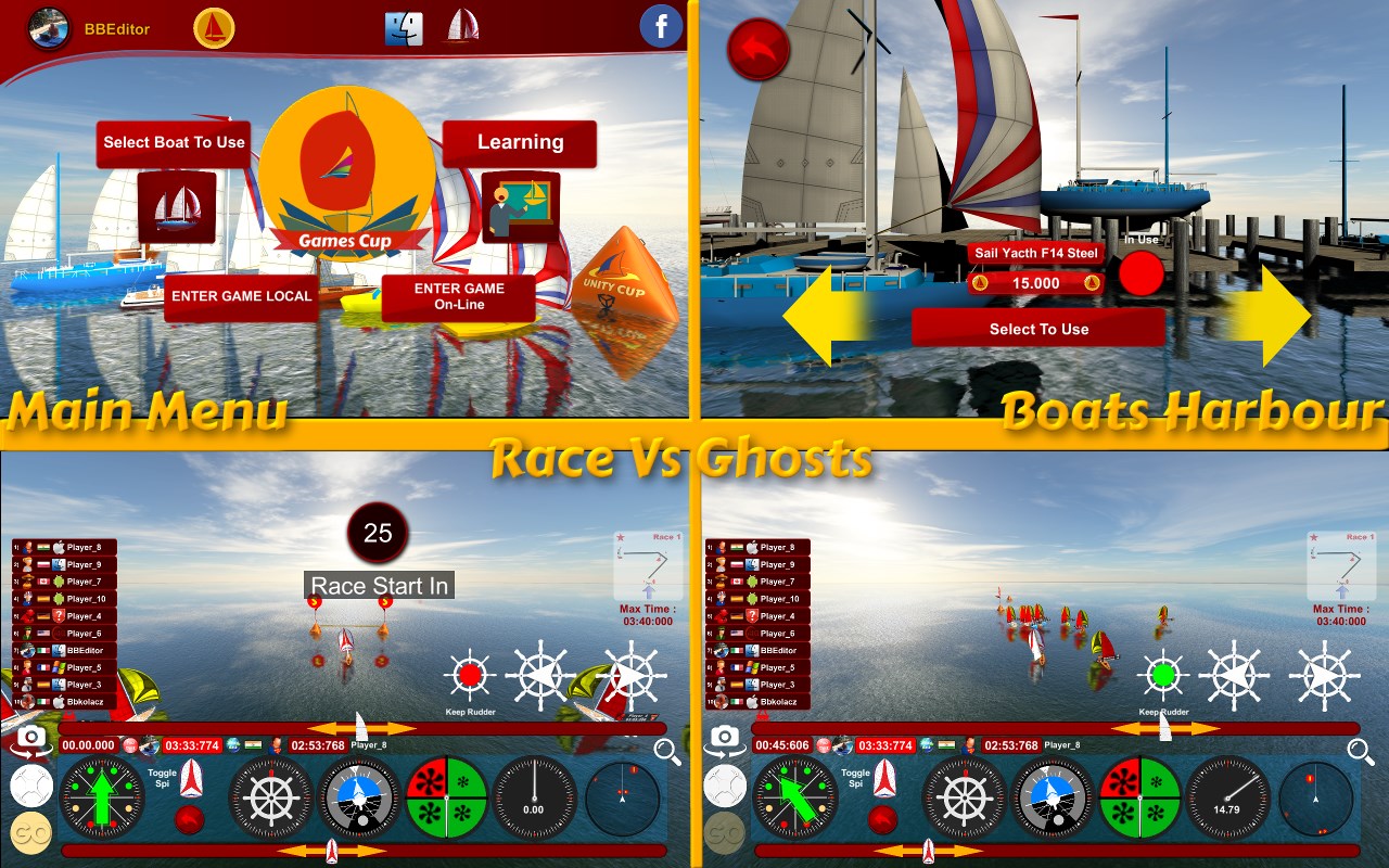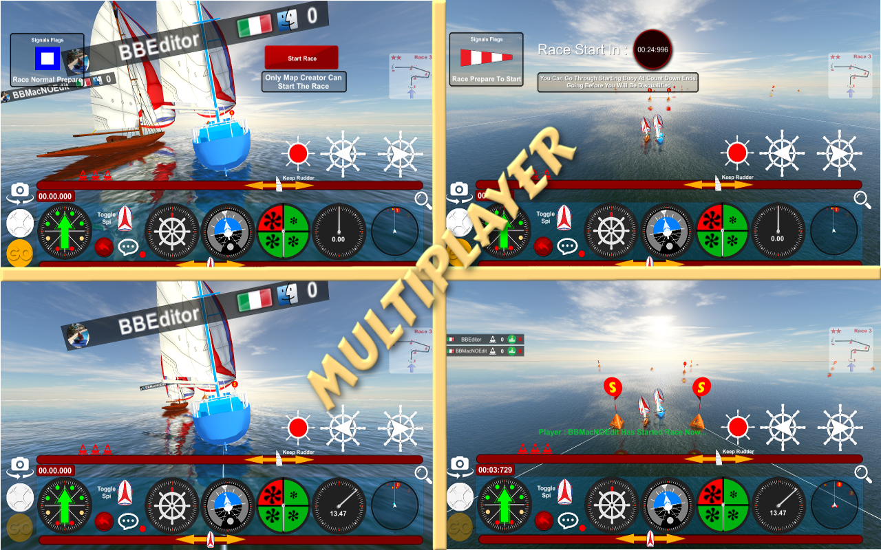 Multiplayer RaceSingle Player RacePlay Vs Others Real Player Ghost ShipReal Sailboat BehaviourCloth Sails Real Wind Pressure On Them