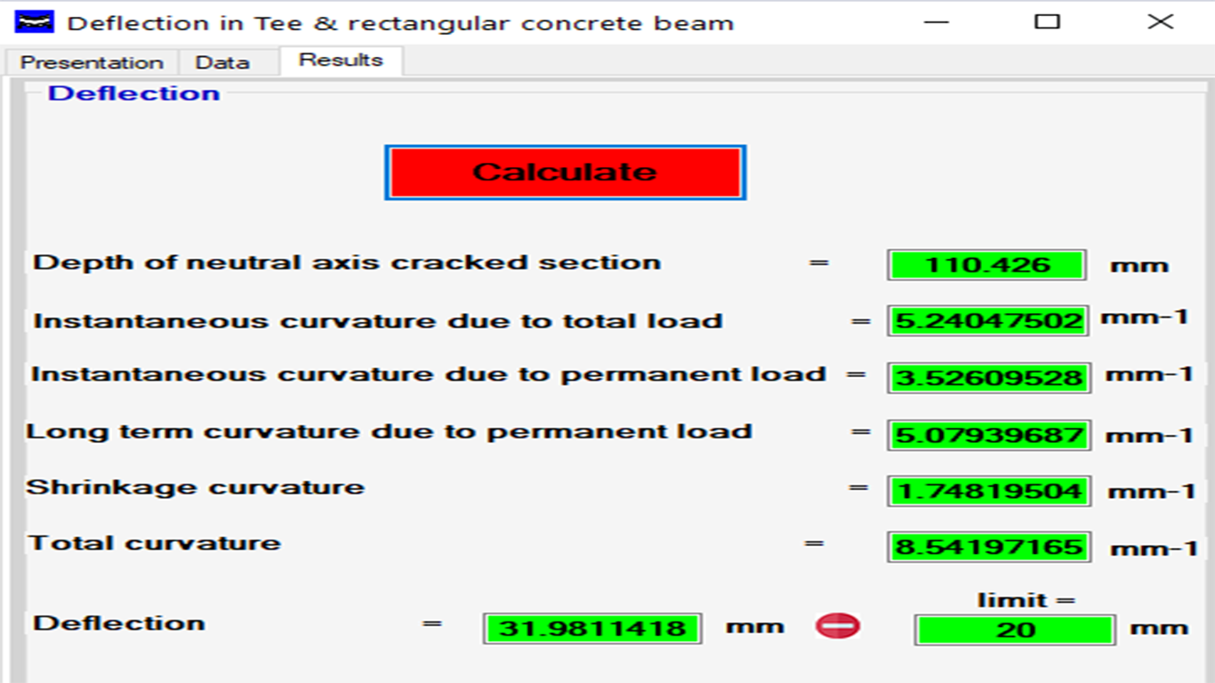 Step 4: Use Deflection in Tee and Rectangular Concrete Beam (BS 8110)