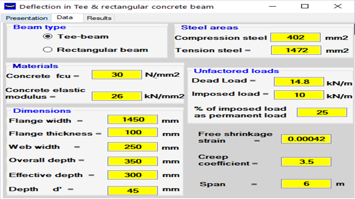 Step 2: Search for Deflection in Tee and Rectangular Concrete Beam (BS 8110)