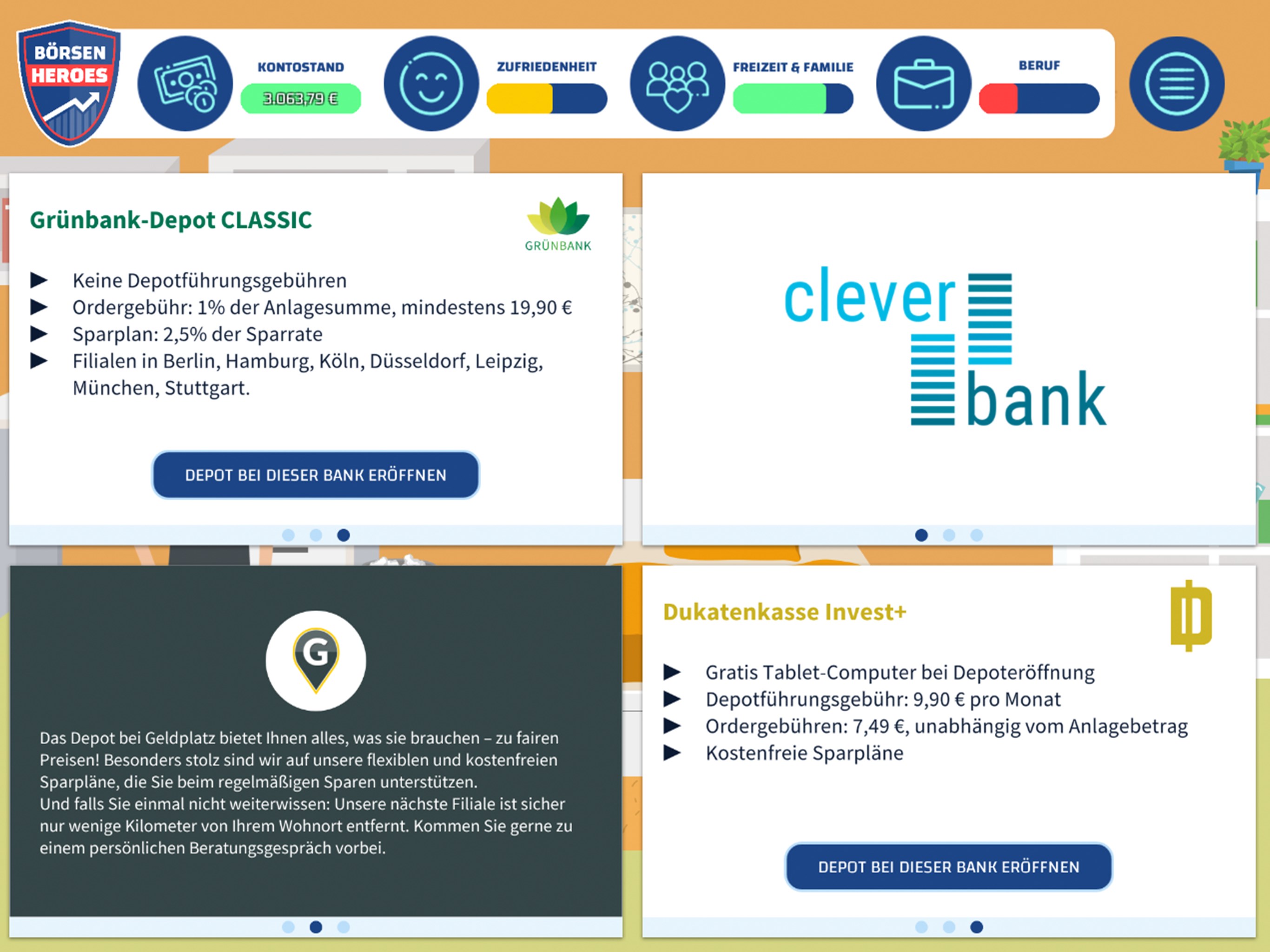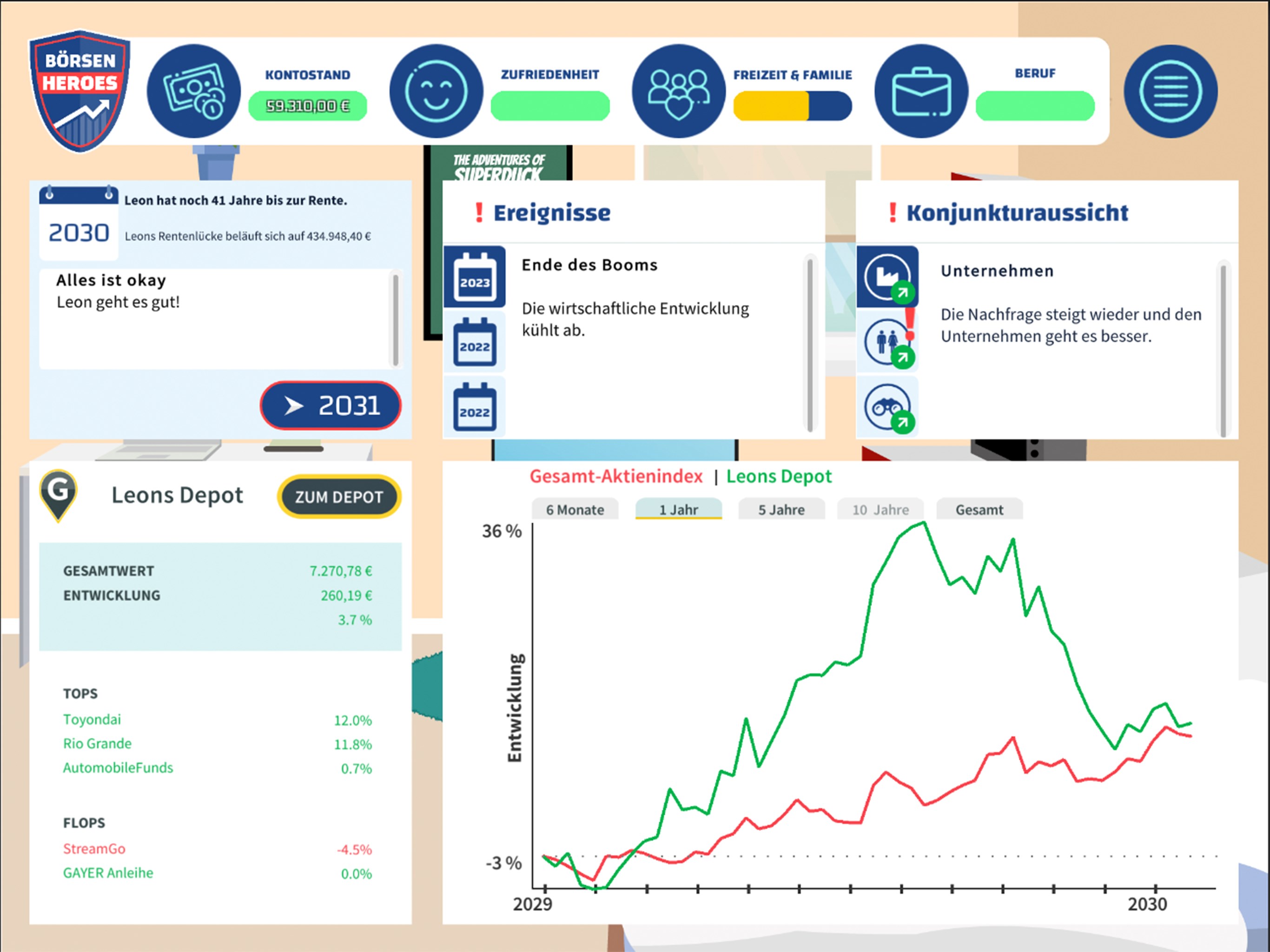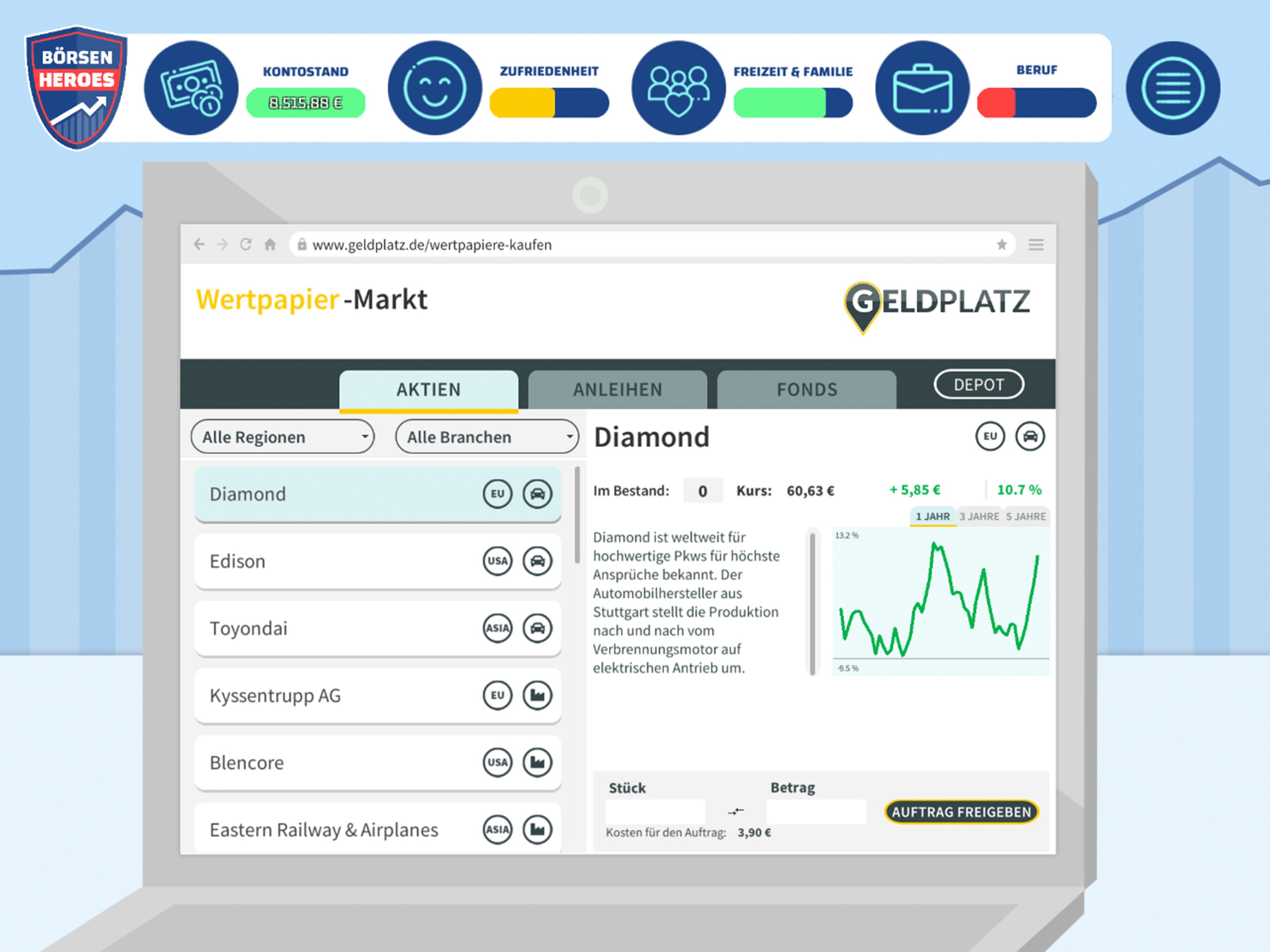 Nachhaltiges Finanzwissen für Jugendliche zur Börse, Wertpapierhandel und Altersvorsorge mit Wertpapier-Sparplänen – lebensnah und handlungsorientiert mit der digitalen Spiele-App BörsenHeroes.