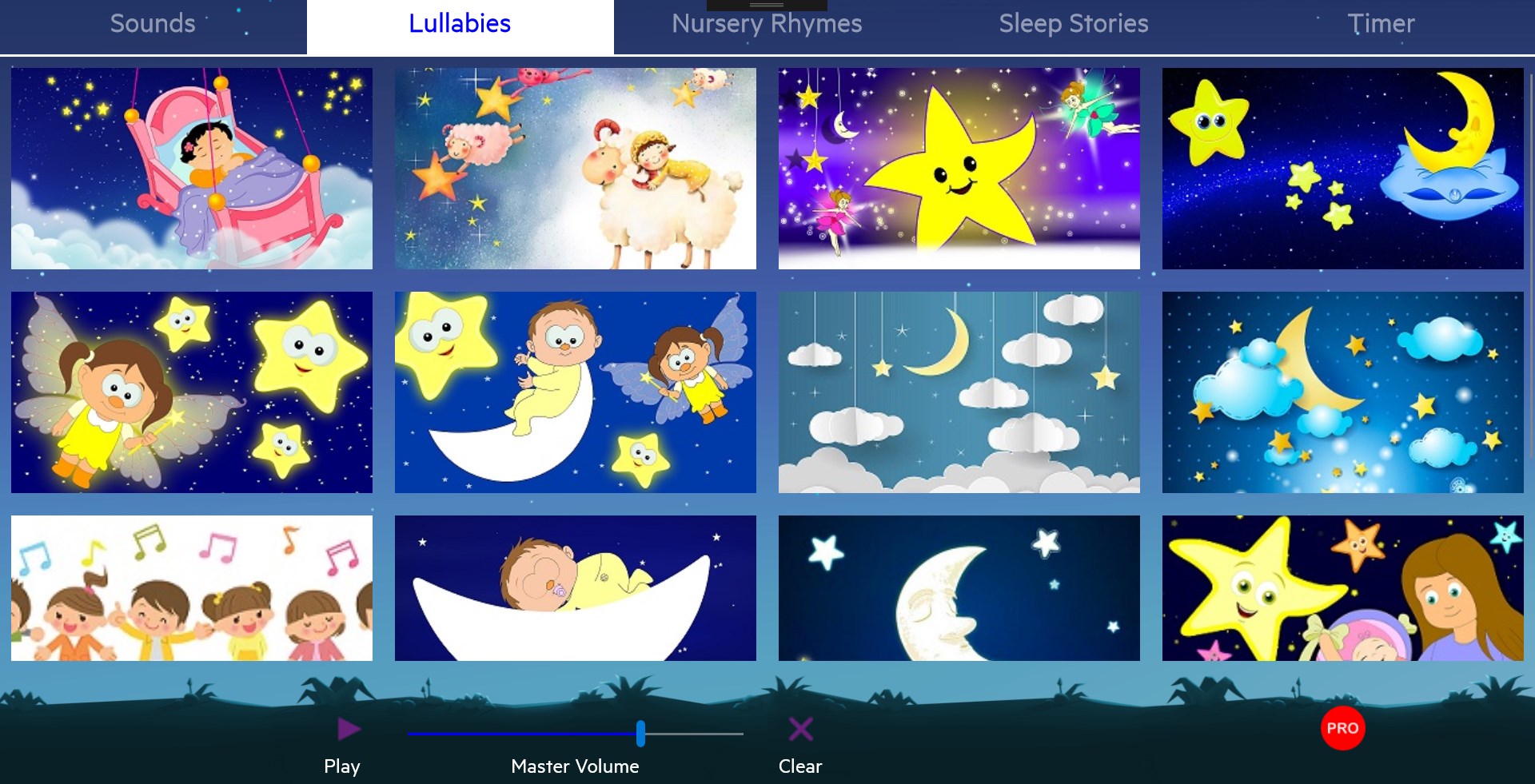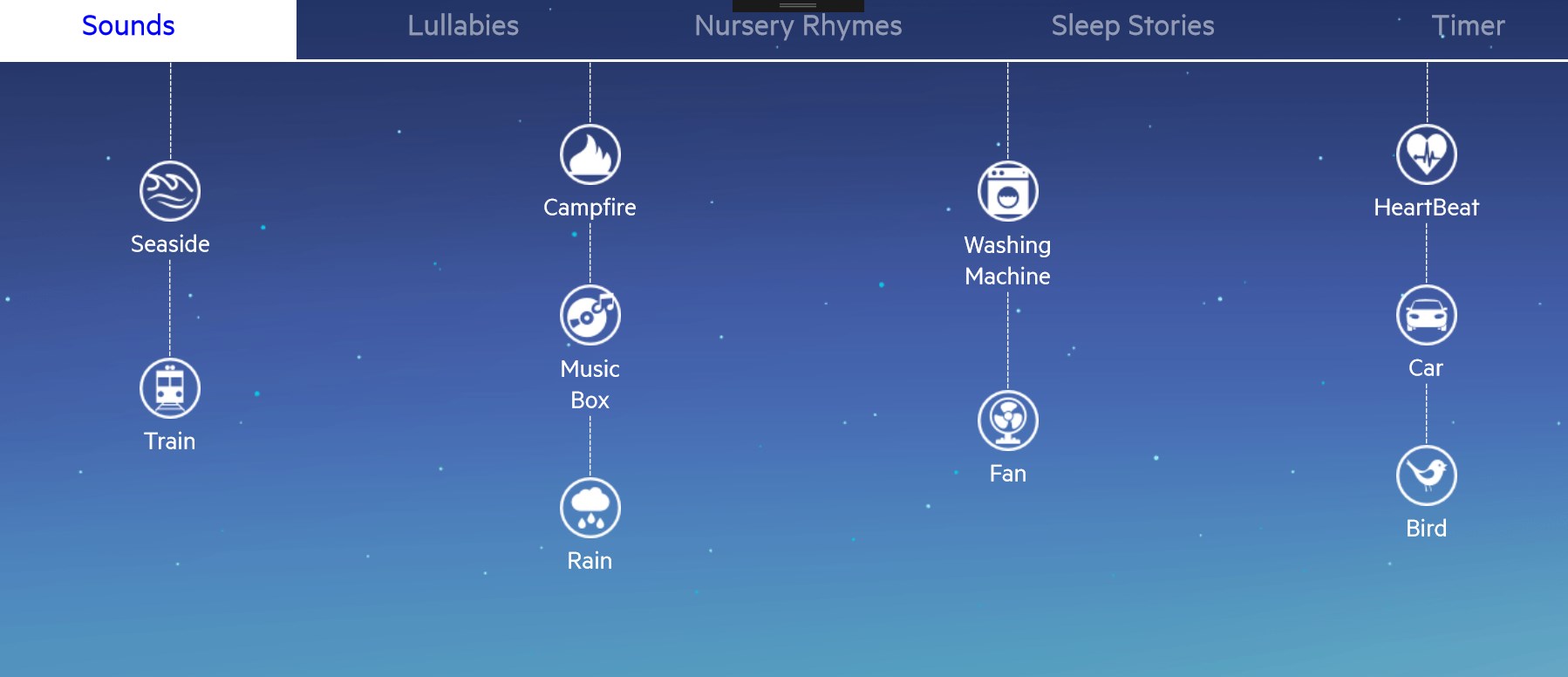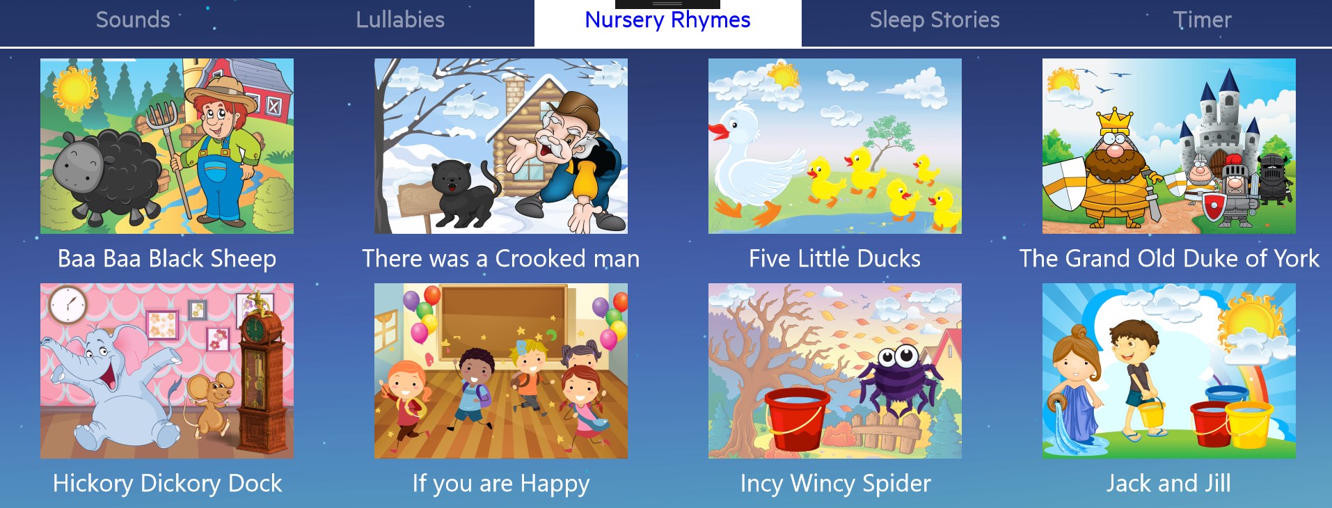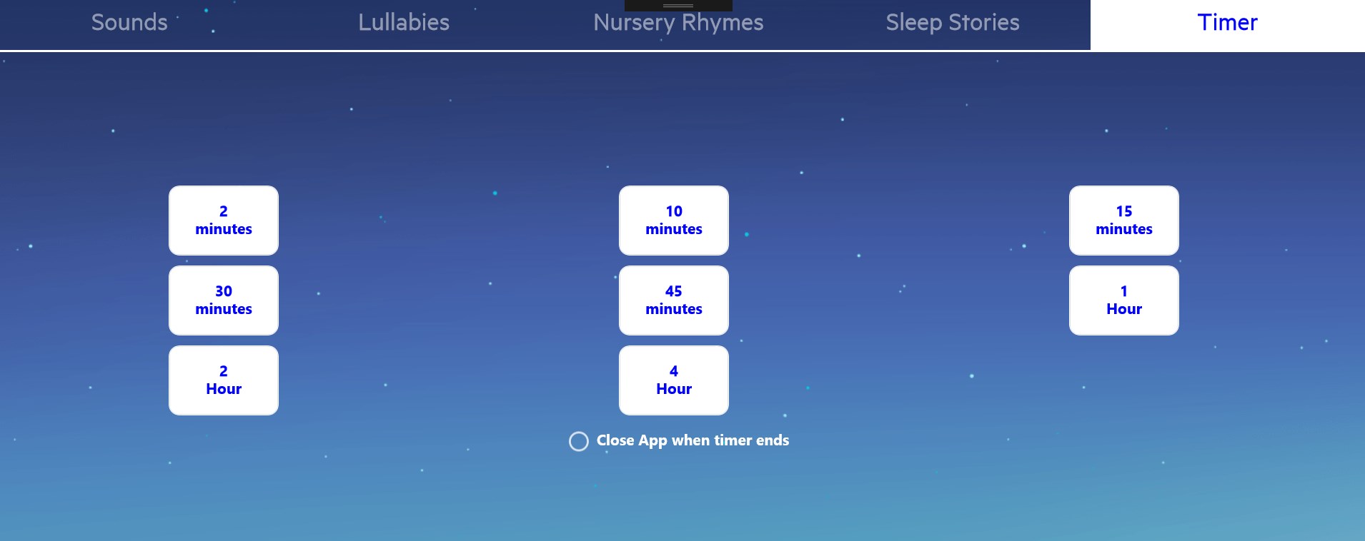 Baby Sleep Sounds is easy to use so that even your babies can start the lullaby. They just choose one of the available sounds. Each lullaby has a colour and a big image do that babies can find their favourite lullabies. A timer will automatically stop the lullaby when times run out.