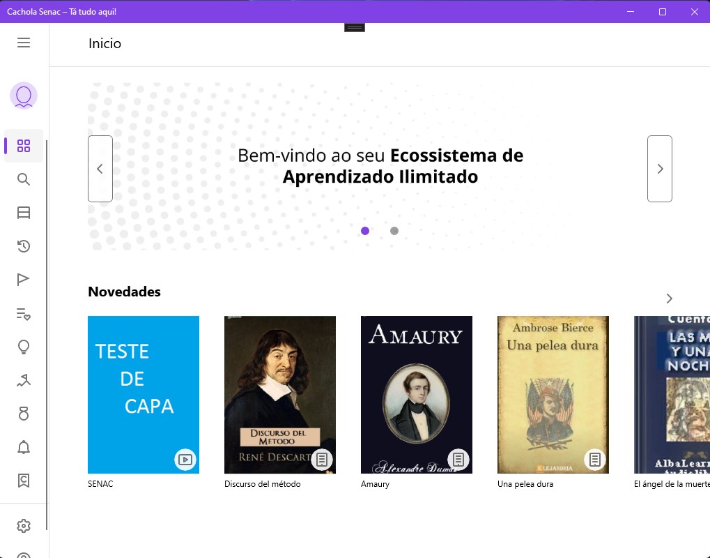 Esta é a sua Cachola, plataforma de conteúdos educacionais digitais, exclusiva para alunos e docentes do Senac. É composta de conteúdos em diversos formatos: livros digitais (e-PUB e PDF), audiolivros, vídeos e podcasts, além de ter espaço para experiências de aprendizagem digitais. como clubes de leitura e objetos de aprendizagem temáticos, para ampliar sua formação. Descubra novas maneiras de ensinar e aprender, inspire-se e desenvolva seu potencial com este catálogo bibliodiverso, que representa múltiplas vozes e visões de mundo, a qualquer hora e em qualquer lugar. Tá tudo aqui!