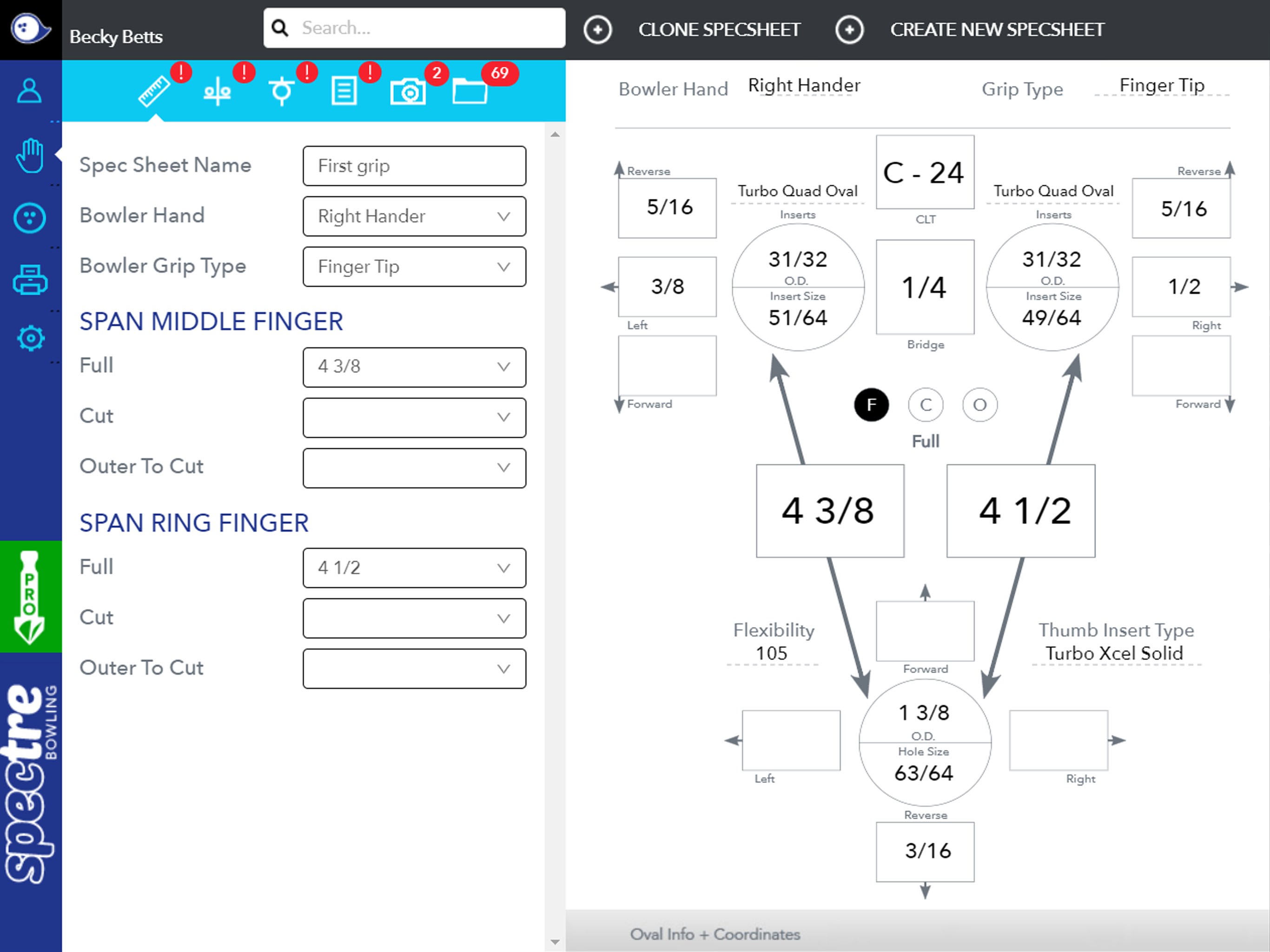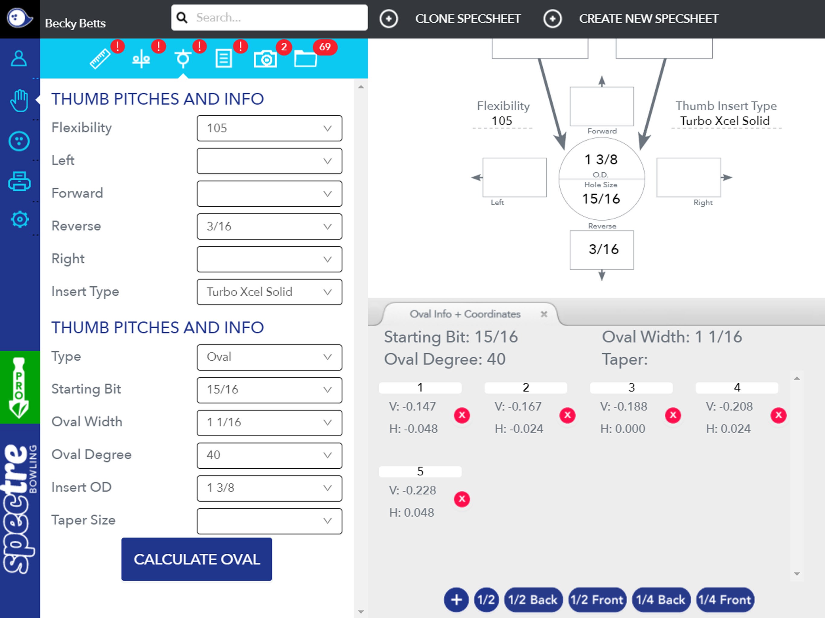 Spectre Bowling - Pro shop drilling spec sheets managed, finally!