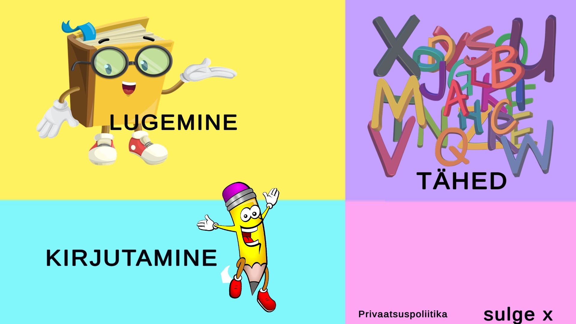 games for learning vowels in Estoniangames for learning pronunciation in Estoniangames for learning reading in Estoniangames for learning writing in Estoniangames to prepare a child for school