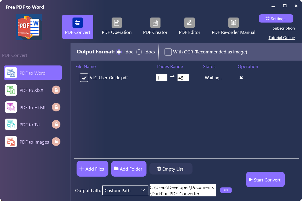 PDF to word is free. Other functions need to upgrade to unlock(4.99USD).