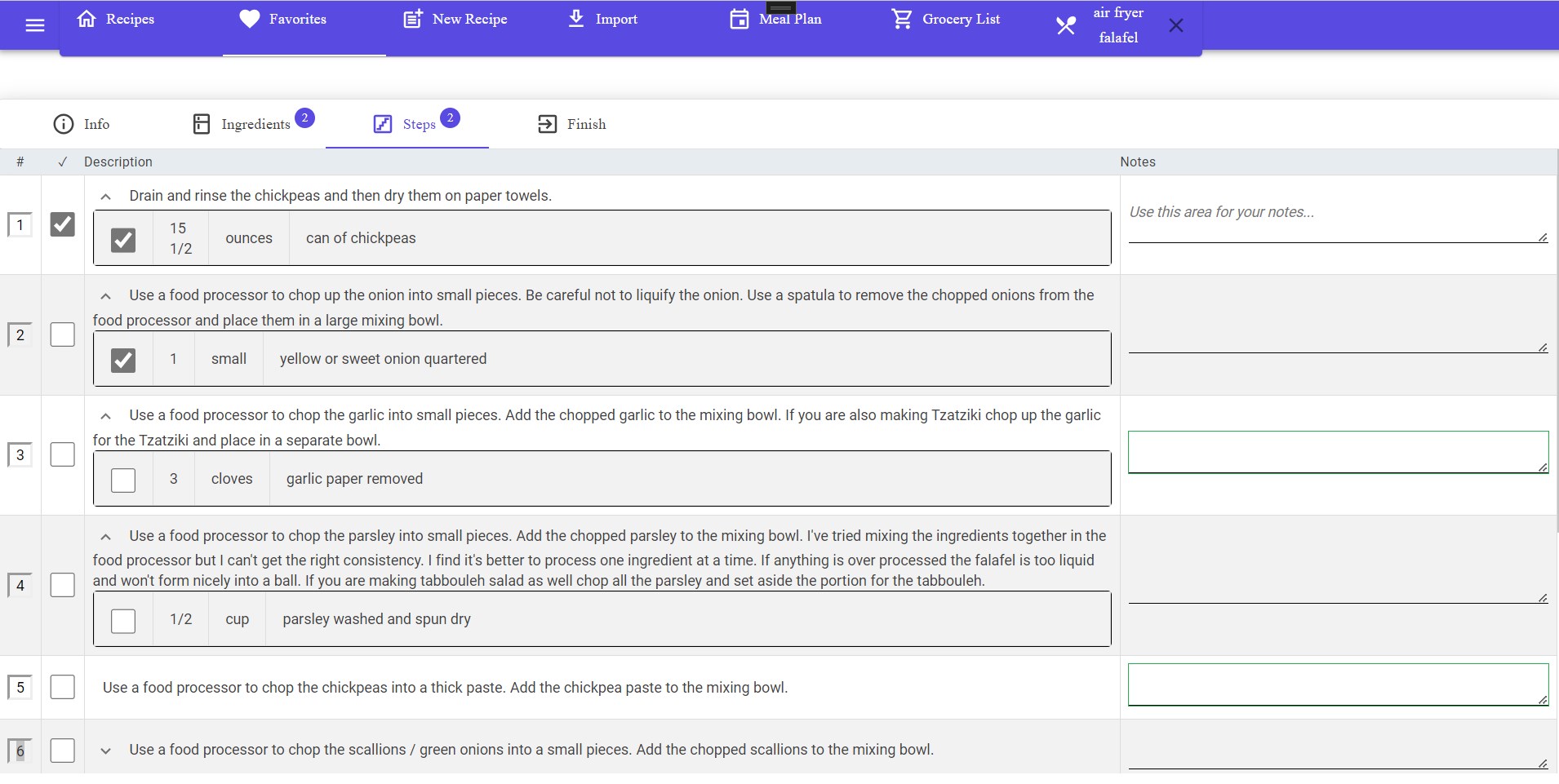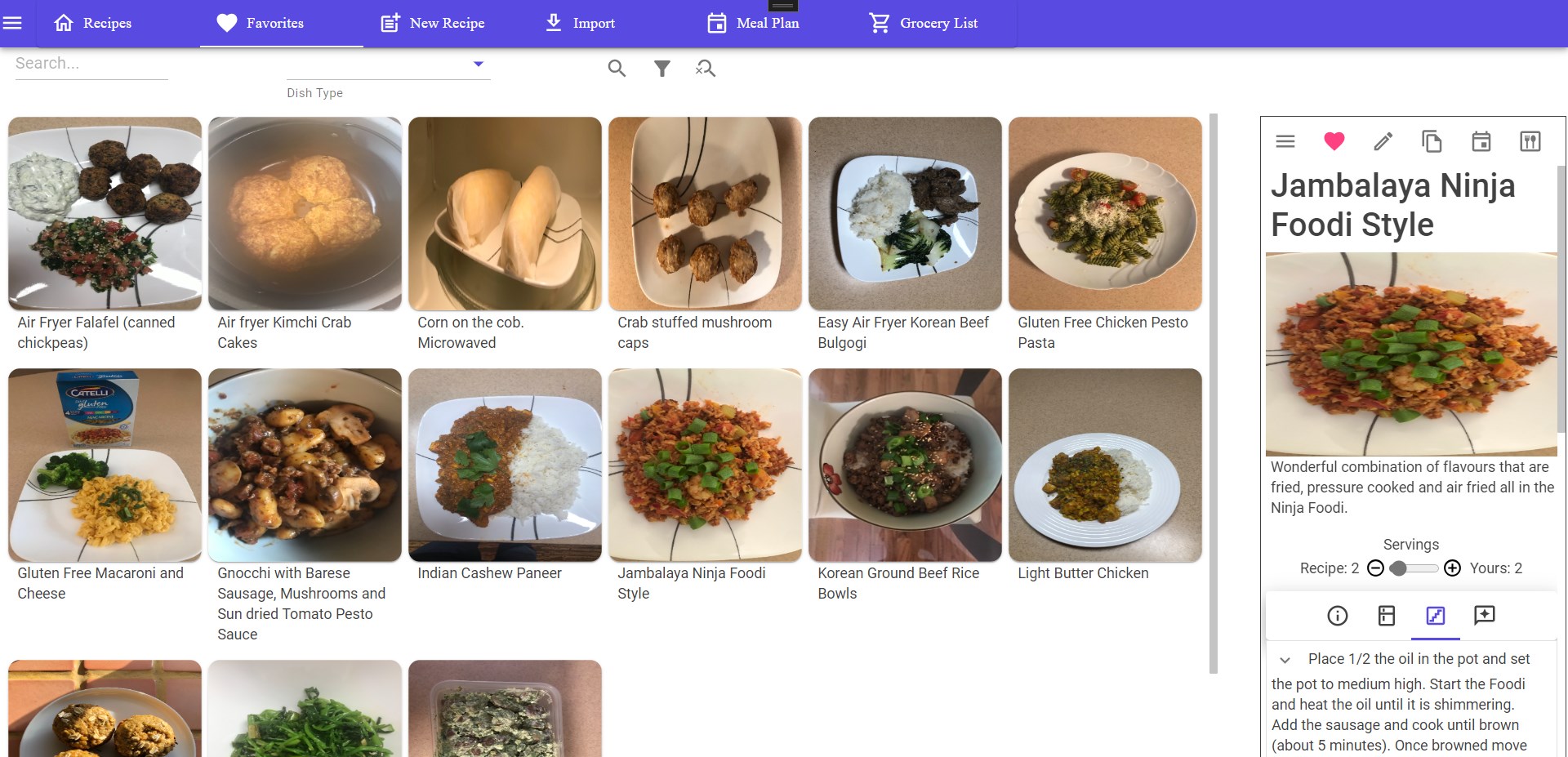 Easily search all your recipes. Make a favorites list.When cooking see the ingredients required for each step.Create a meal plan.Manage your shopping list.Add notes and updates to your recipes.