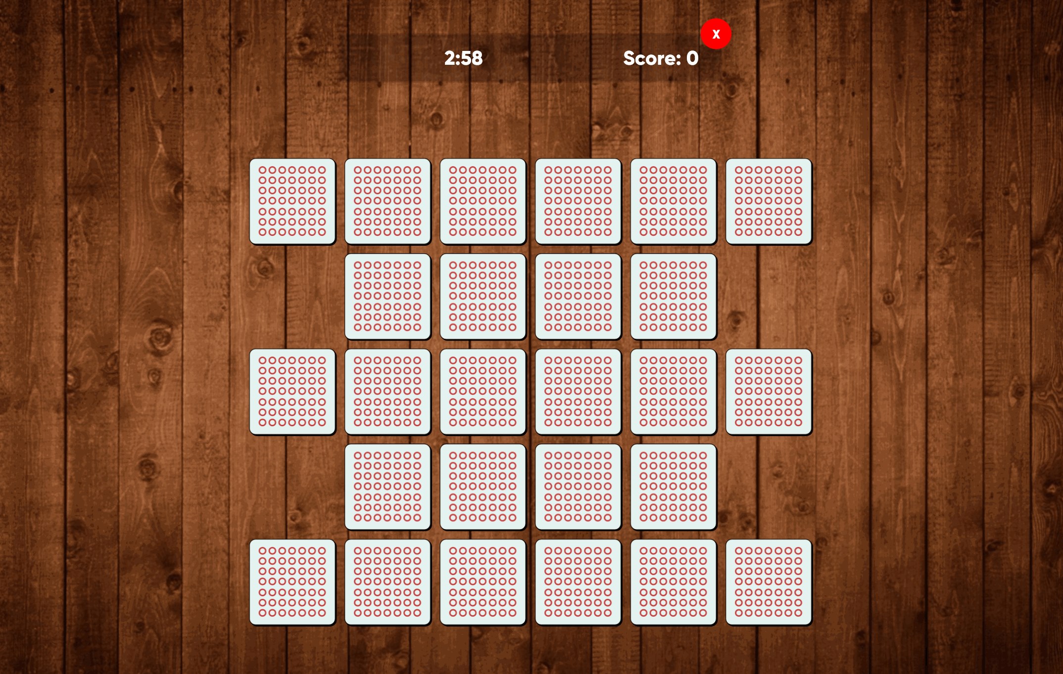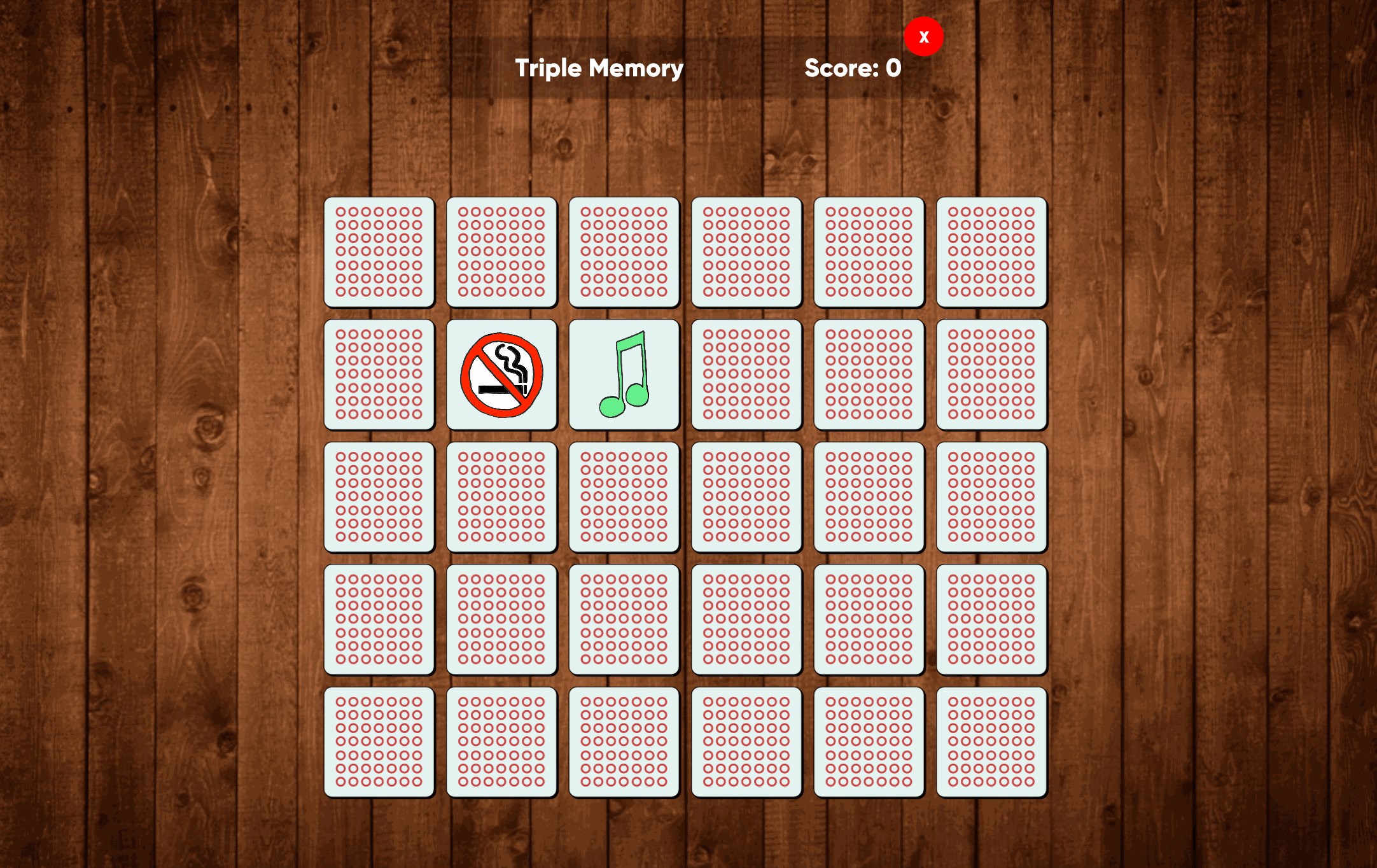 The classic memory card game. Play 12, 20 or 30 cards or choose challenge mode where you can train yourself to play as much as possible boards in 3 minutes. As a bonus we added TRIPLE MEMORY, where you memorize and match triplets!