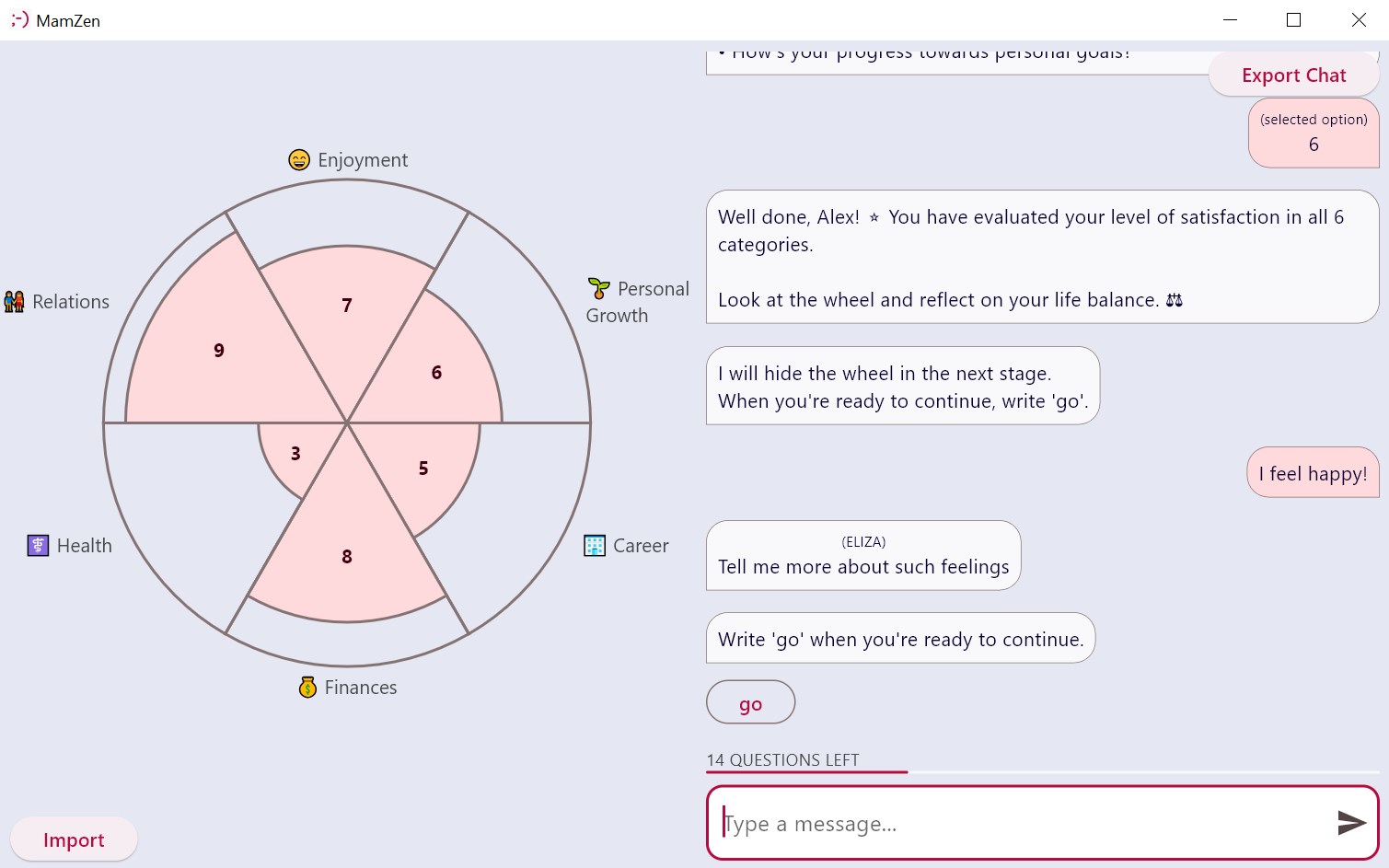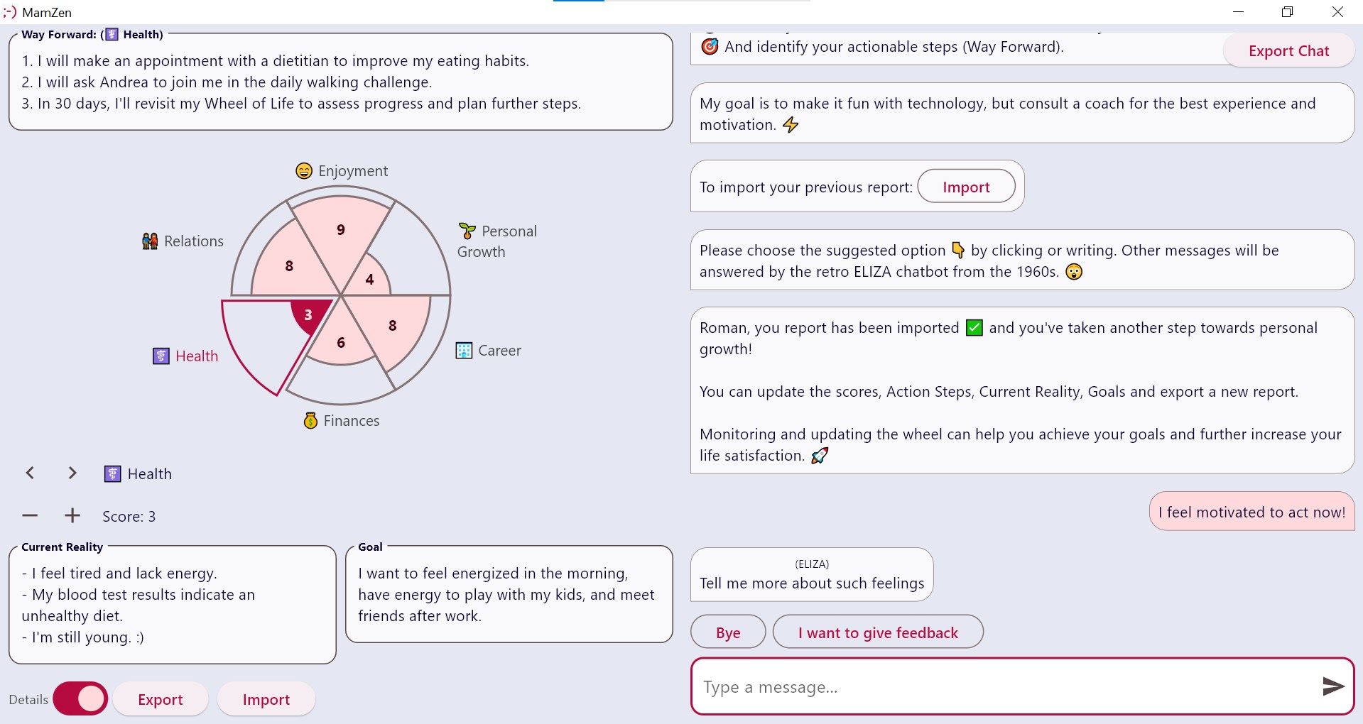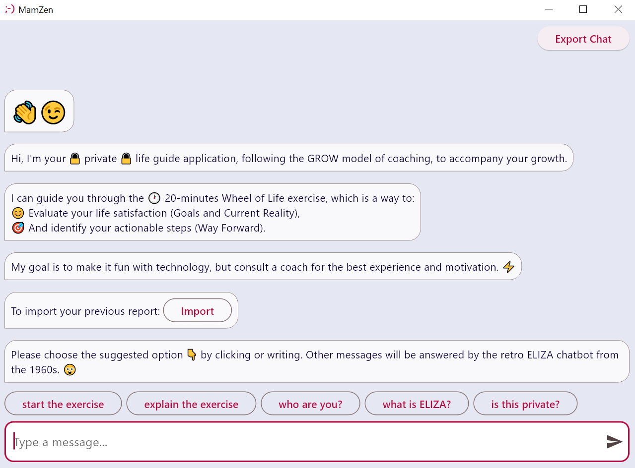 U+1F3A1 Guided Wheel of Life self-assessmentU+1F512 Total Privacy: Data stays on your device; the app functions offline and without ads.U+1F393 Blended Professionalism: Created by an AI and R&D professional, currently pursuing postgraduate coaching studies.U+1F64B♂️ Personal Connection: Developed by an individual, this app offers you the opportunity to reach out, discuss it, and, in the near future, request coaching services.