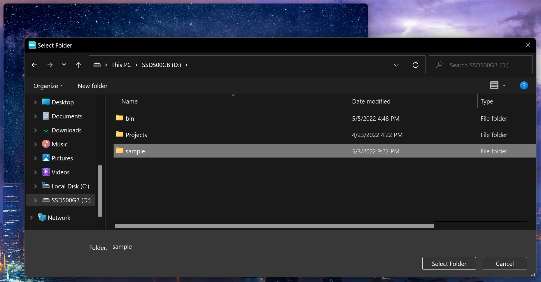 This application randomly displays the images (png, jpg, gif, bmp, or webp) in the folder you specified.
