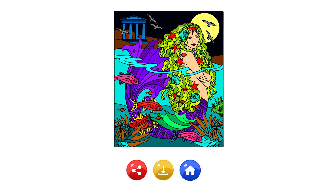 Show off your creativity and color various drawing art with your imagination. Let's nothing restrain your creative vision and make dull grey pictures bright and lovely. Make sure you use the right glitters to color mermaids and aquatic animals. Your drawing sparkles and twinkles.