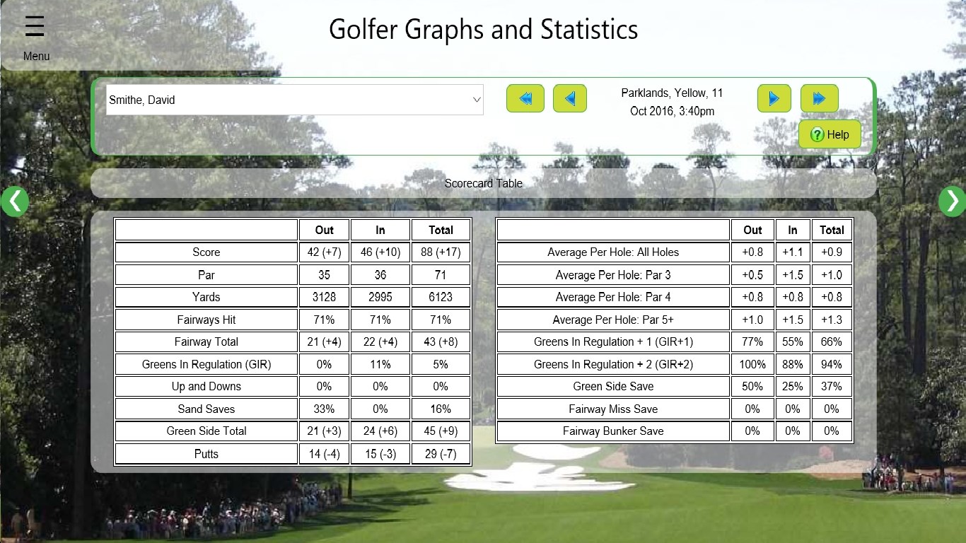 Golf AnalysisHandicapsGraphs and ChartsFairways HitGreens In RegulationSand SavesUp and Downs (Scrambles)PuttsGolf StatisticsGolf Stats