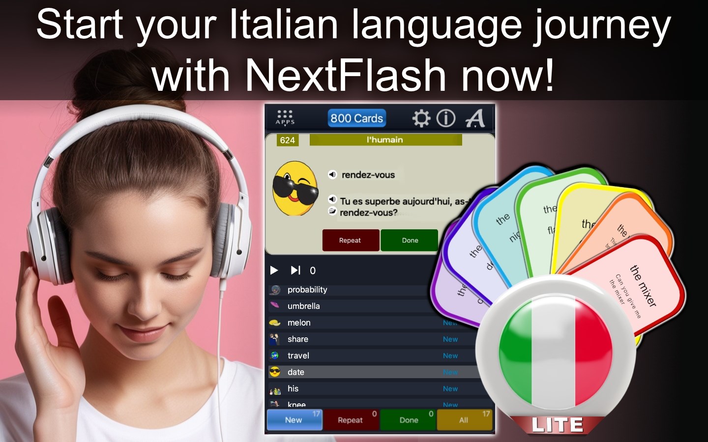 Start your Italian learning journey today and open the door to exciting new opportunities with NextFlash Italian Lite!