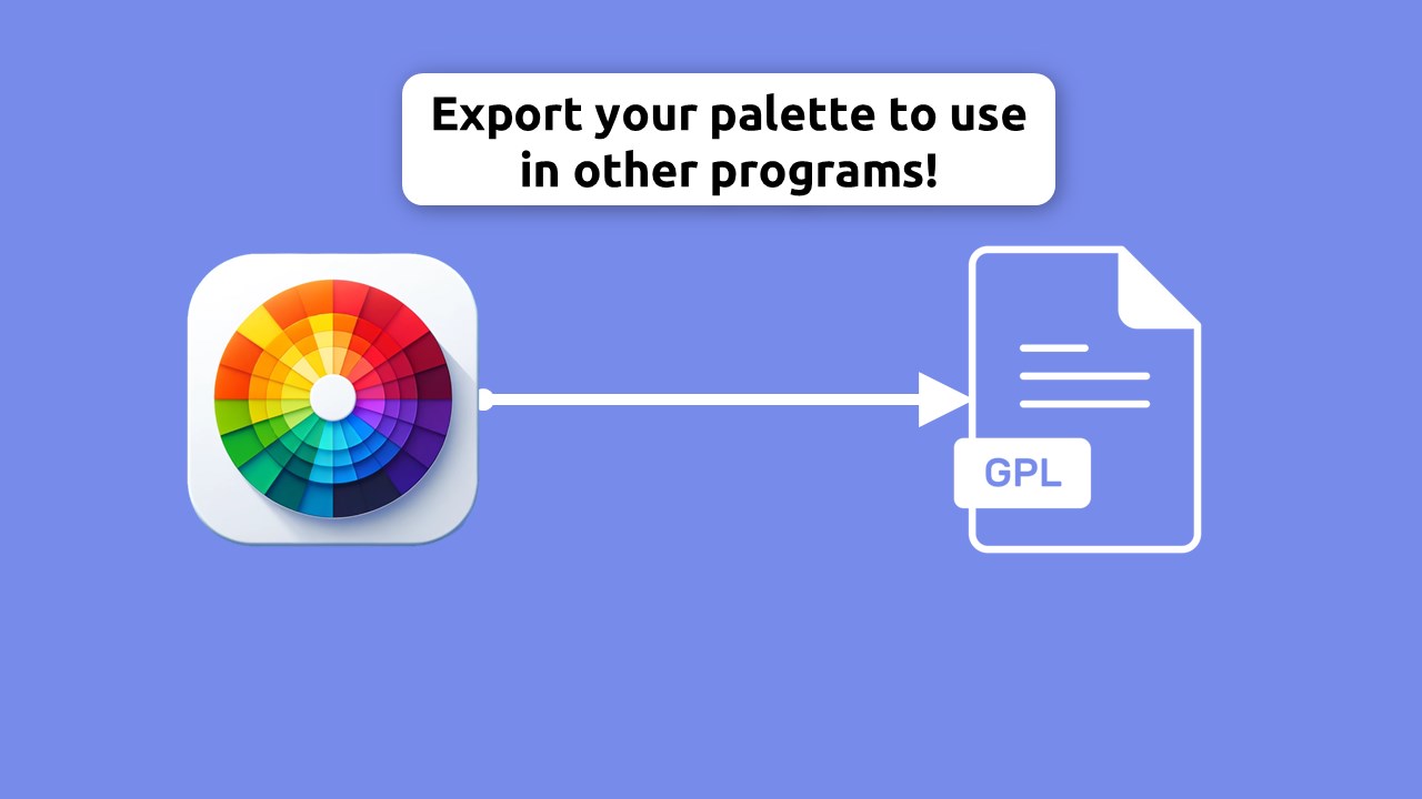 Palette export as *.gpl file (Tested with: Gimp, Libreoffice, Krita, Inkscape and Scribus)