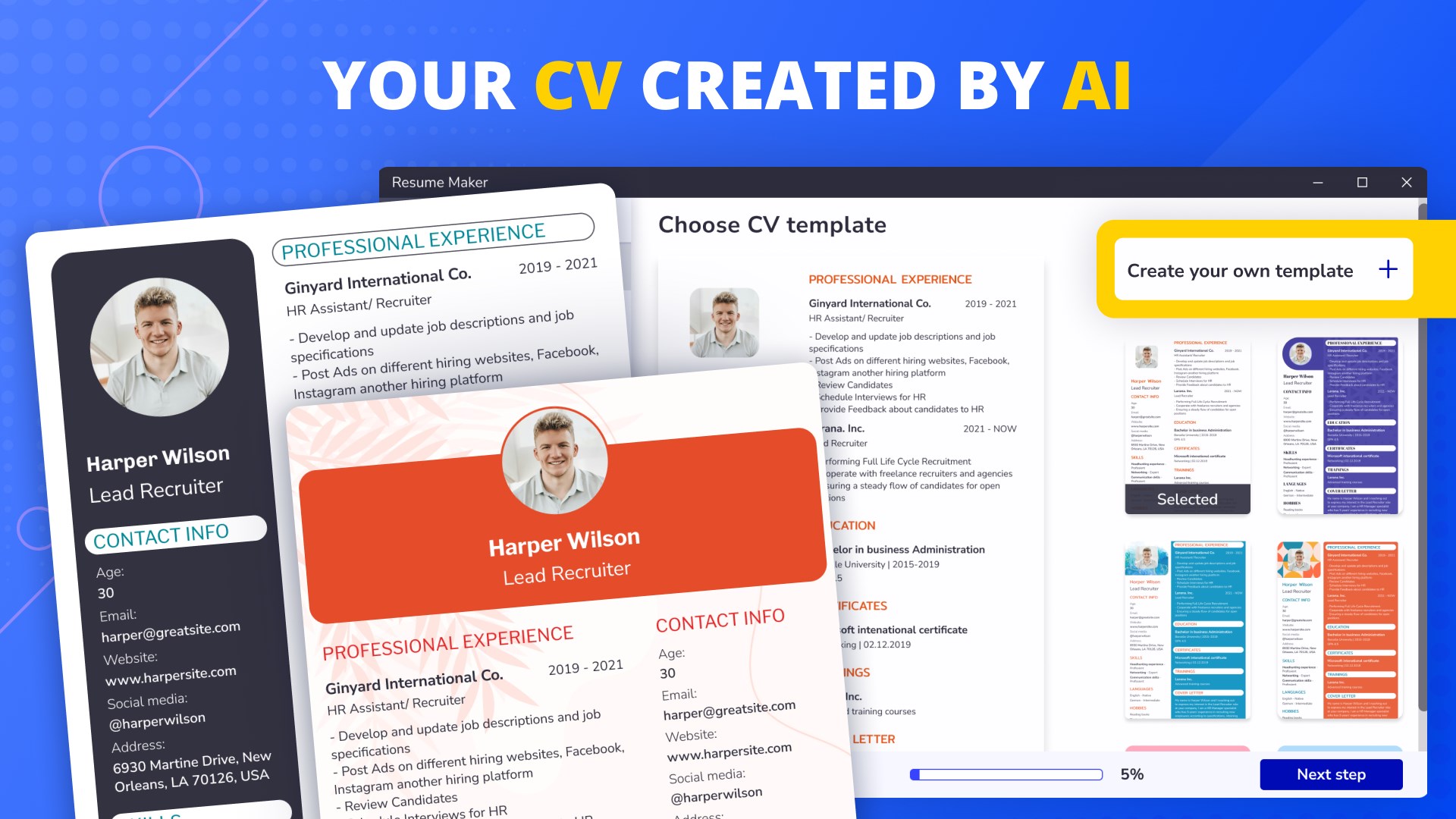 Resume building tips and templates will help you to create a CV that will definitely not be left without attention. Find a job of your dream with our resume maker app!