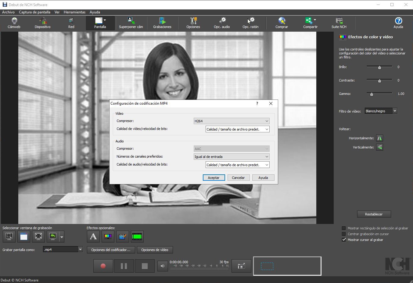 * Capacidad de ajusta la resolución y velocidad de fotogramas del vídeo de salida