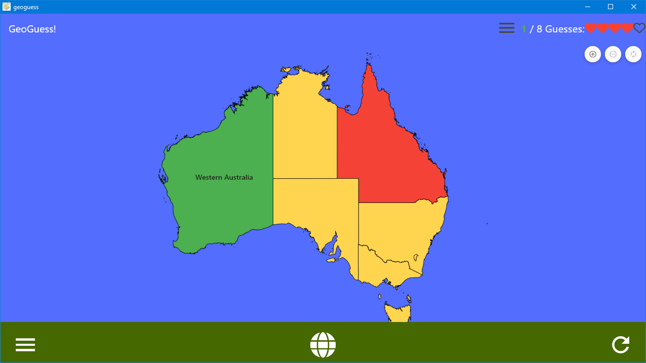 A fun guessing game to learn the geography of the world! Guess countries by clicking on a country, change to a different region with the globe button.