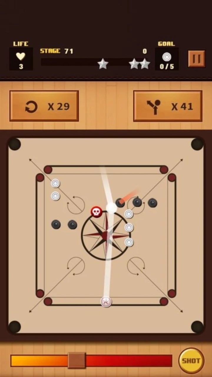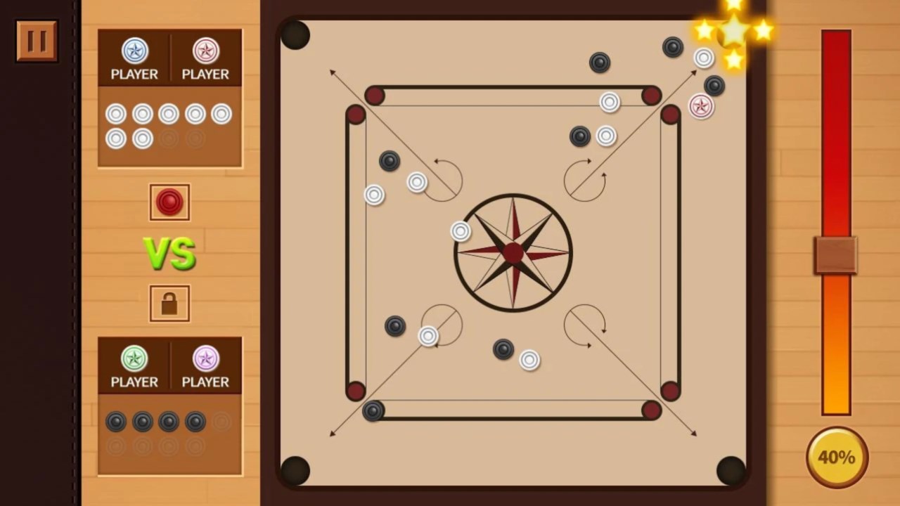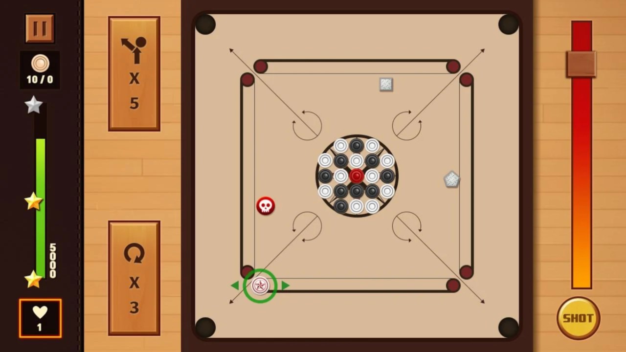 - The classic mode which complies with the basic Carrom rules supports single and pair mode.