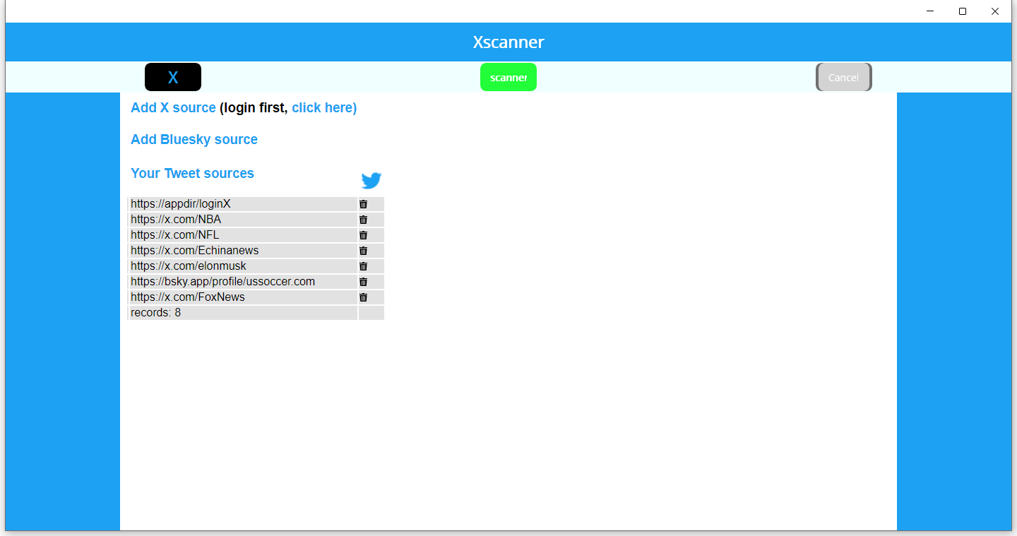 Instantly view the posts of your selected sources on Bluesky and X. No need for an account on Bluesky. Quickly search and filter the tweets.