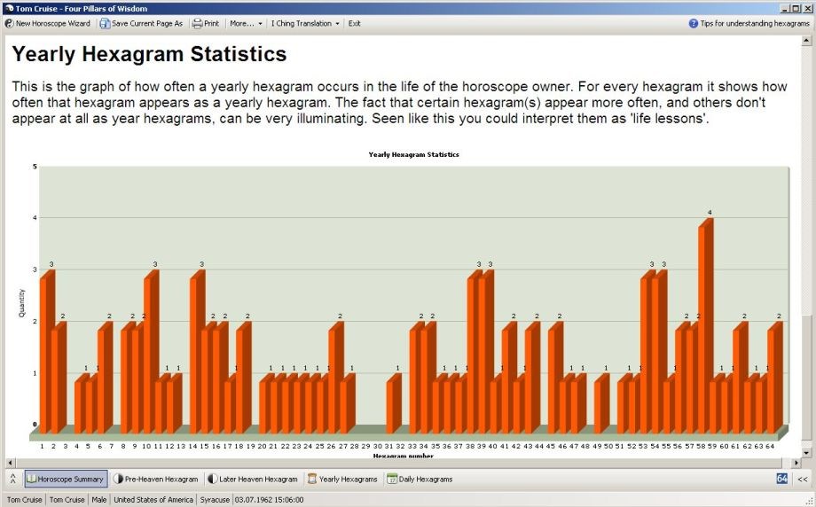 6. Yearly Hexagram Statistics can help you to understand what “life lessons” will more often occur during your lifetime.