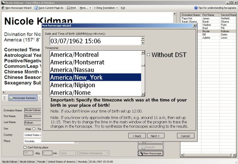 4. The program has a huge database of cities from all over the world, so you will not have to look for coordinates of your place of birth in other sources.