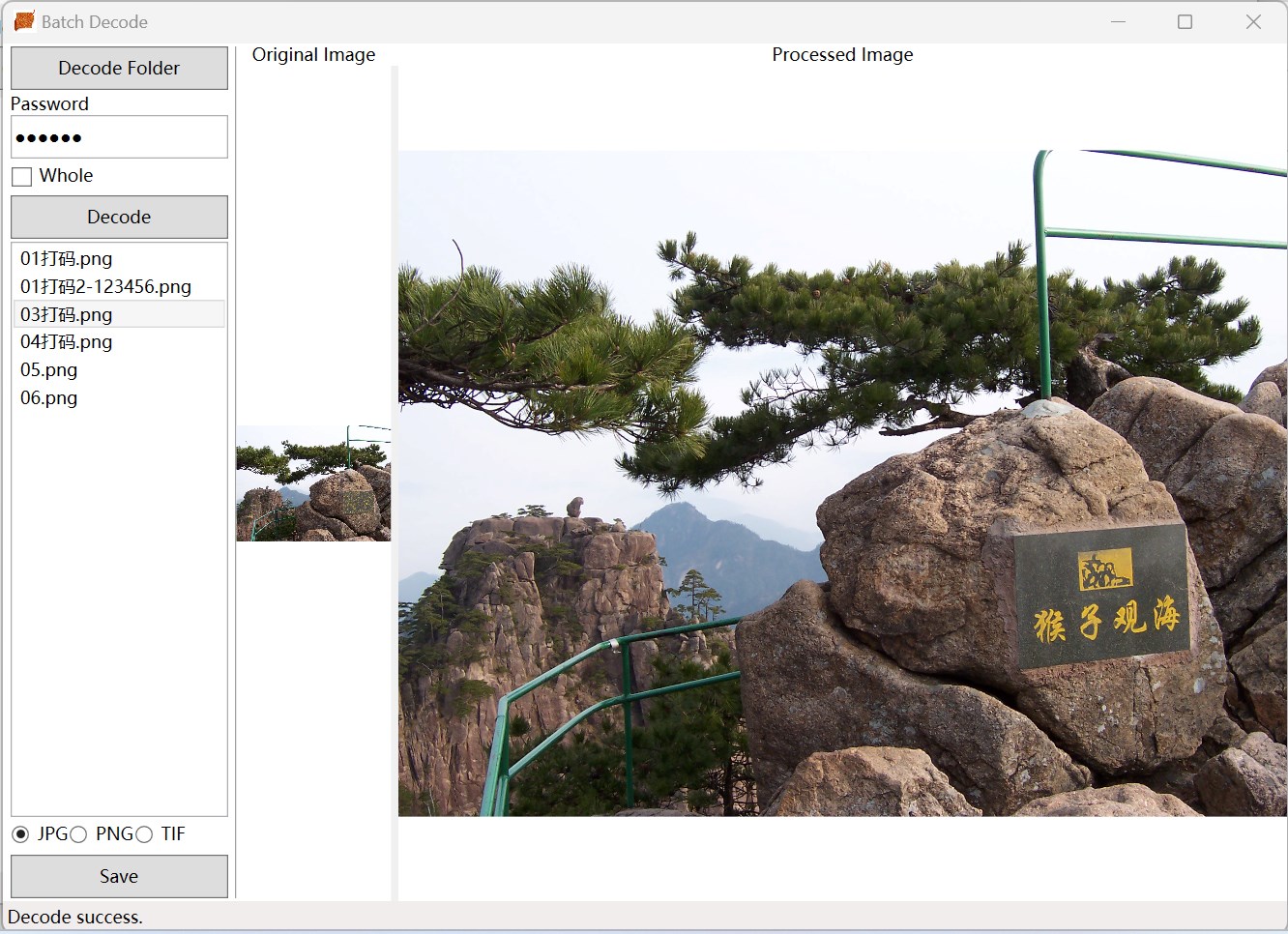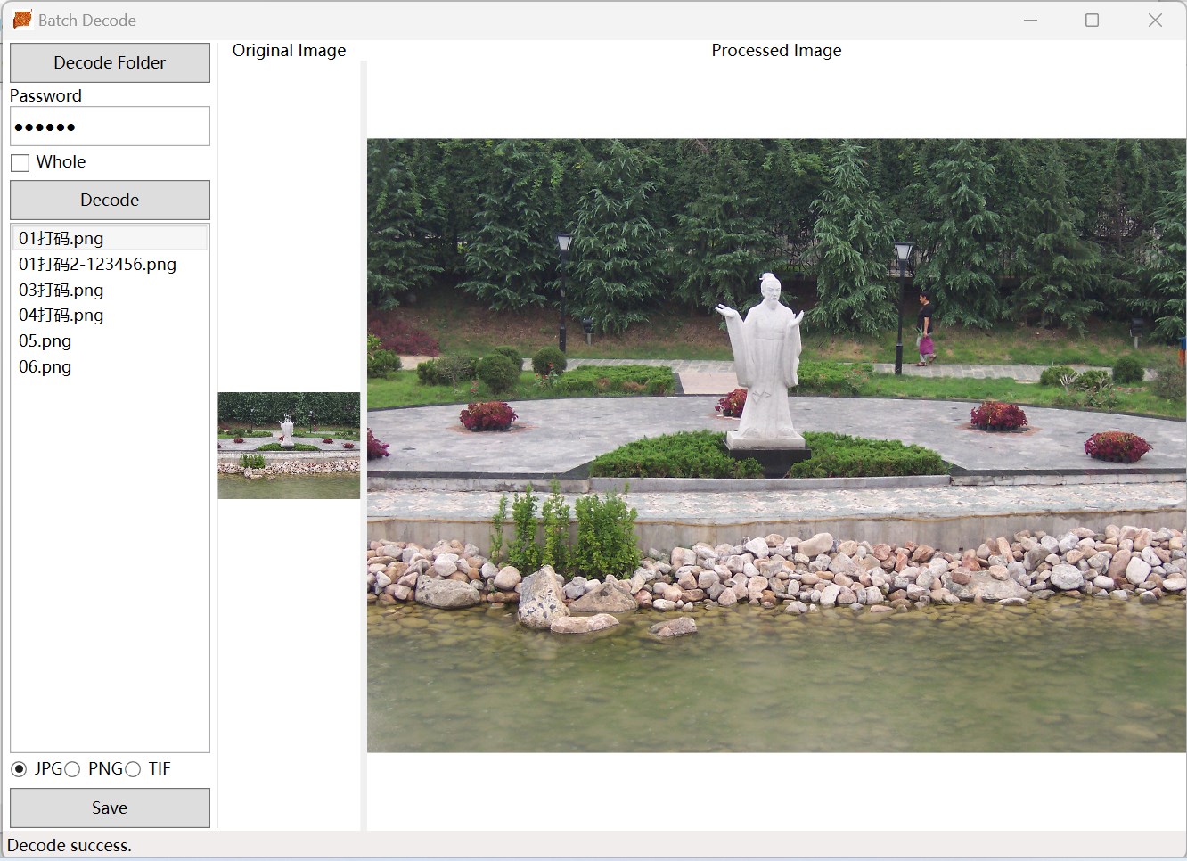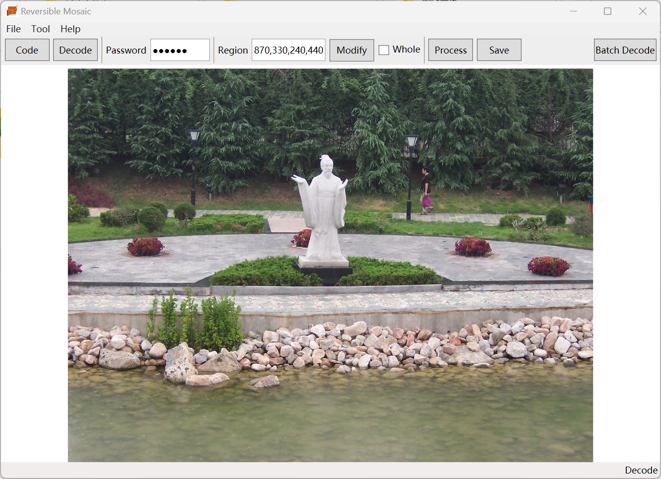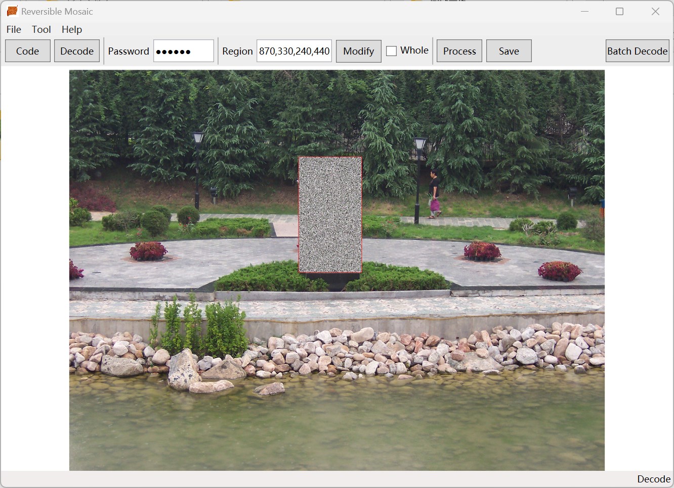 After using this software to code the photo, you only need to provide the correct password to decode the area with mosaic.