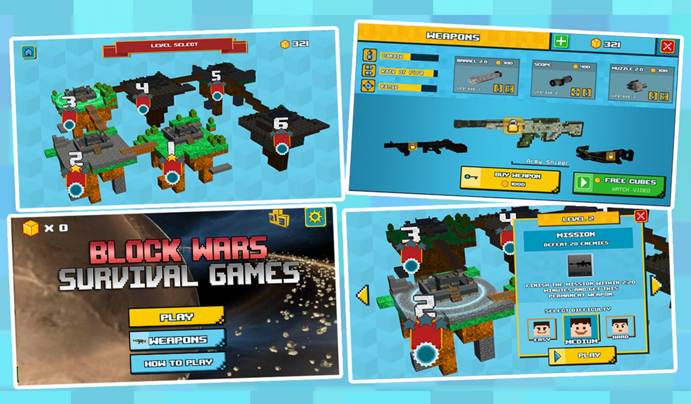 Revolutionary game play is at your fingertips in an array of breathtaking and challenging levels. Block Wars Survival Games is not your average game. Death and magic lurk in every shadow and around every turn. This addictive game will have fans of free FPS action games up in arms over the intense challenges at their fingertips.