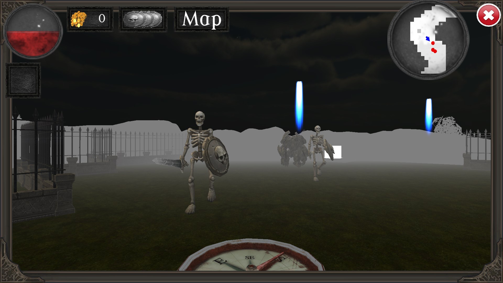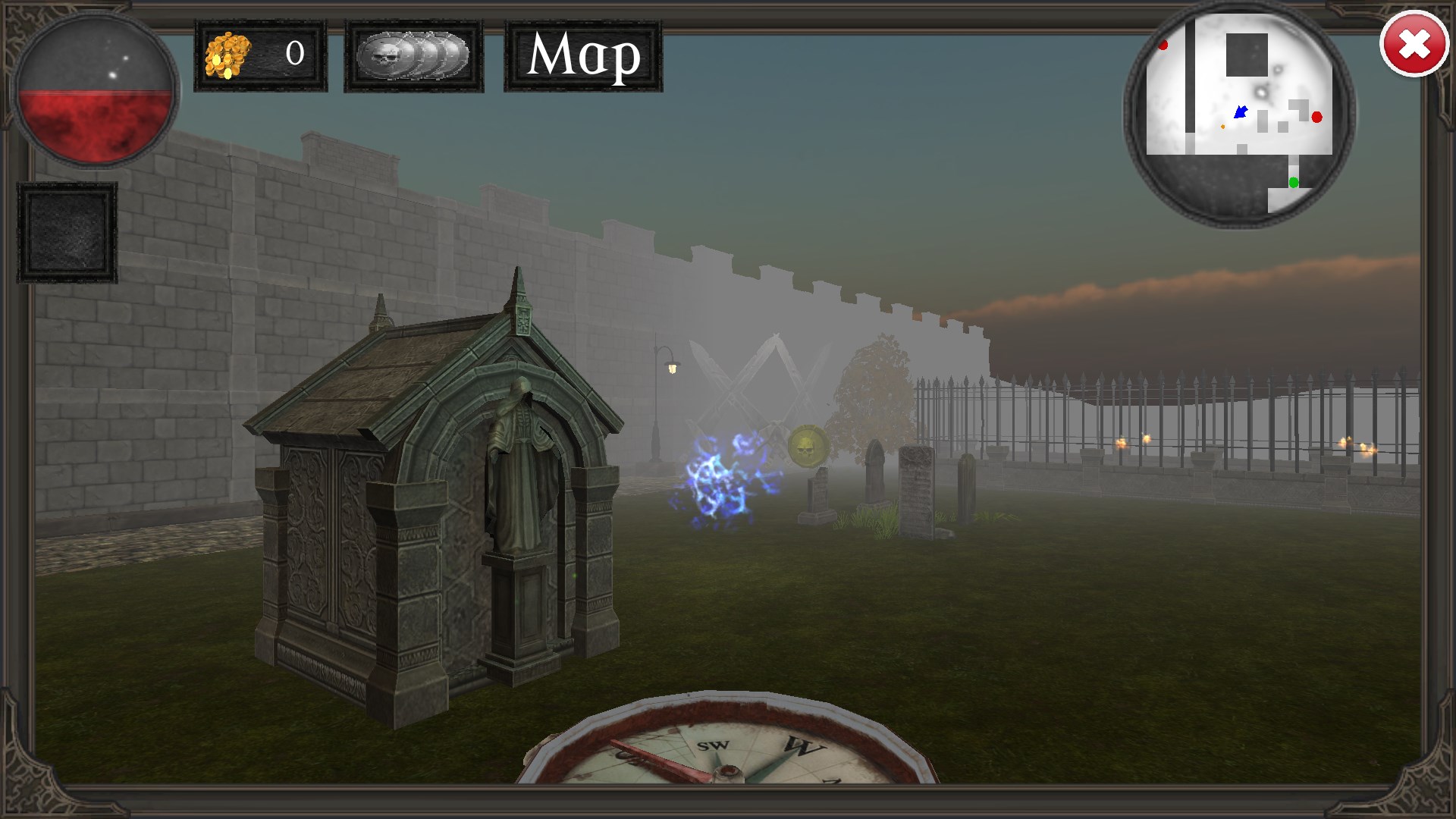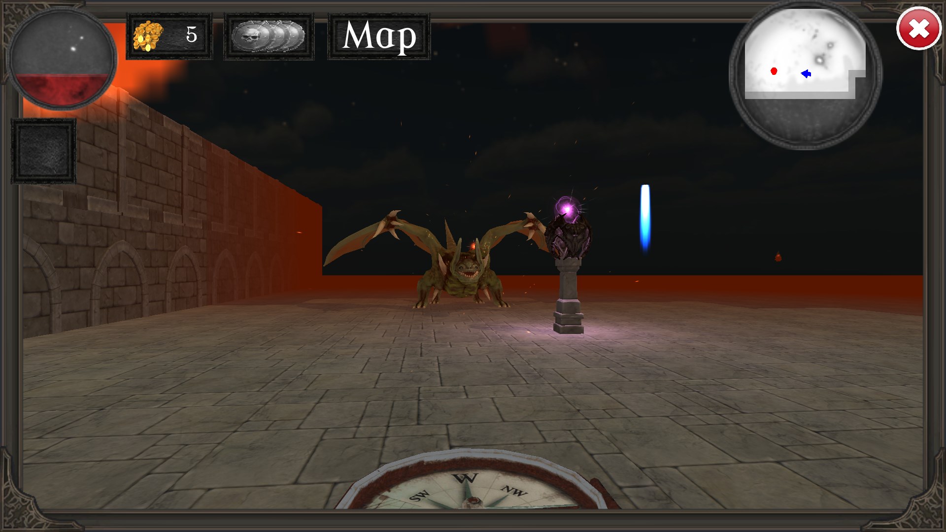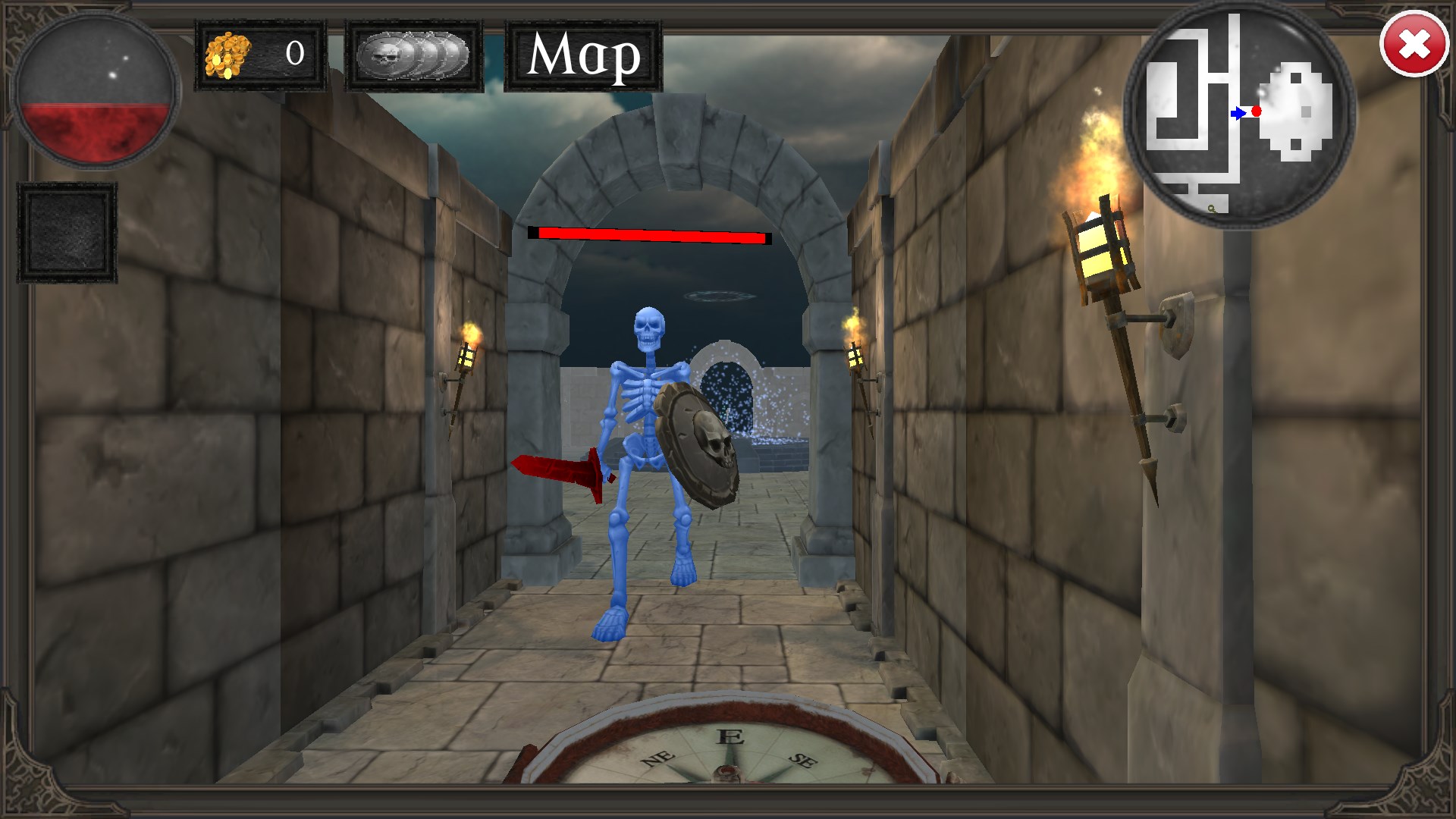 Monsters: Skeletons, spiders, goblins, golems, demons and Dragons.High quality 3d graphics.Various levels with teleports, keys, doors, gems, gold, power ups.Mini map.Secret walls.20 Levels to unlock.Level Editor