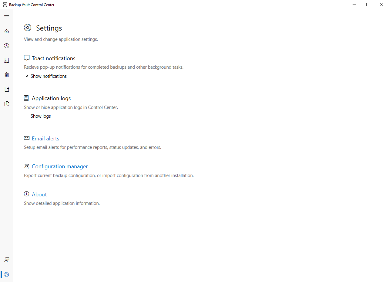 If you have used the non-store version of Backup Vault, please make a backup of your configuration before installing the store version of the app. If the non-store version of Backup Vault is installed, your data will be migrated to the new version.
