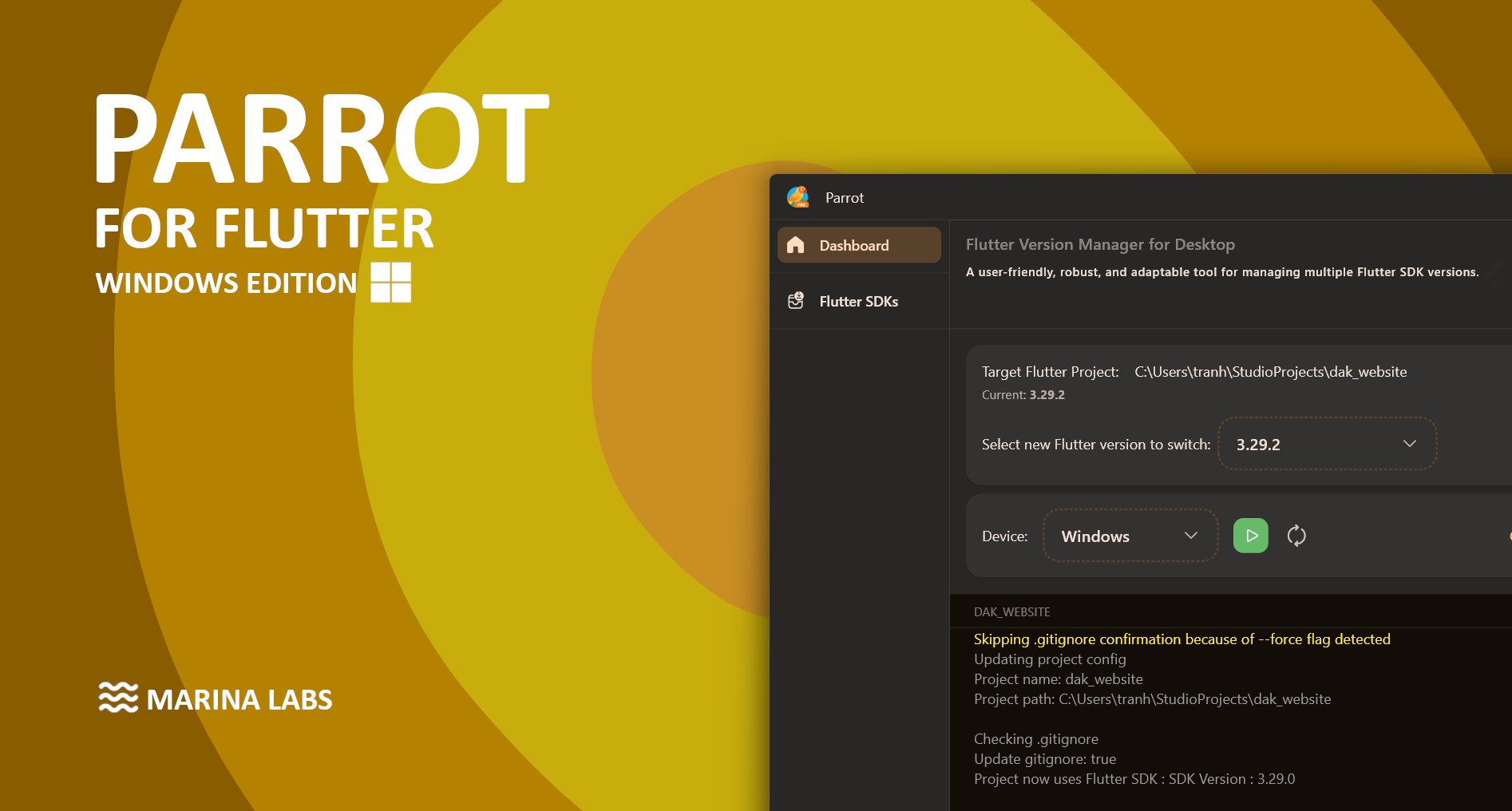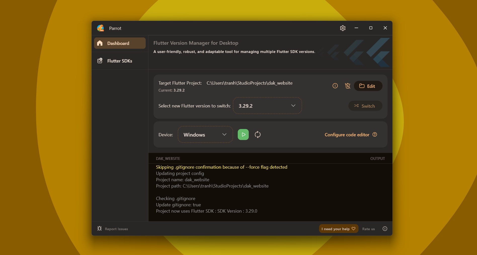 Step 4: Use Parrot Pro | Flutter Version Manager for Desktop