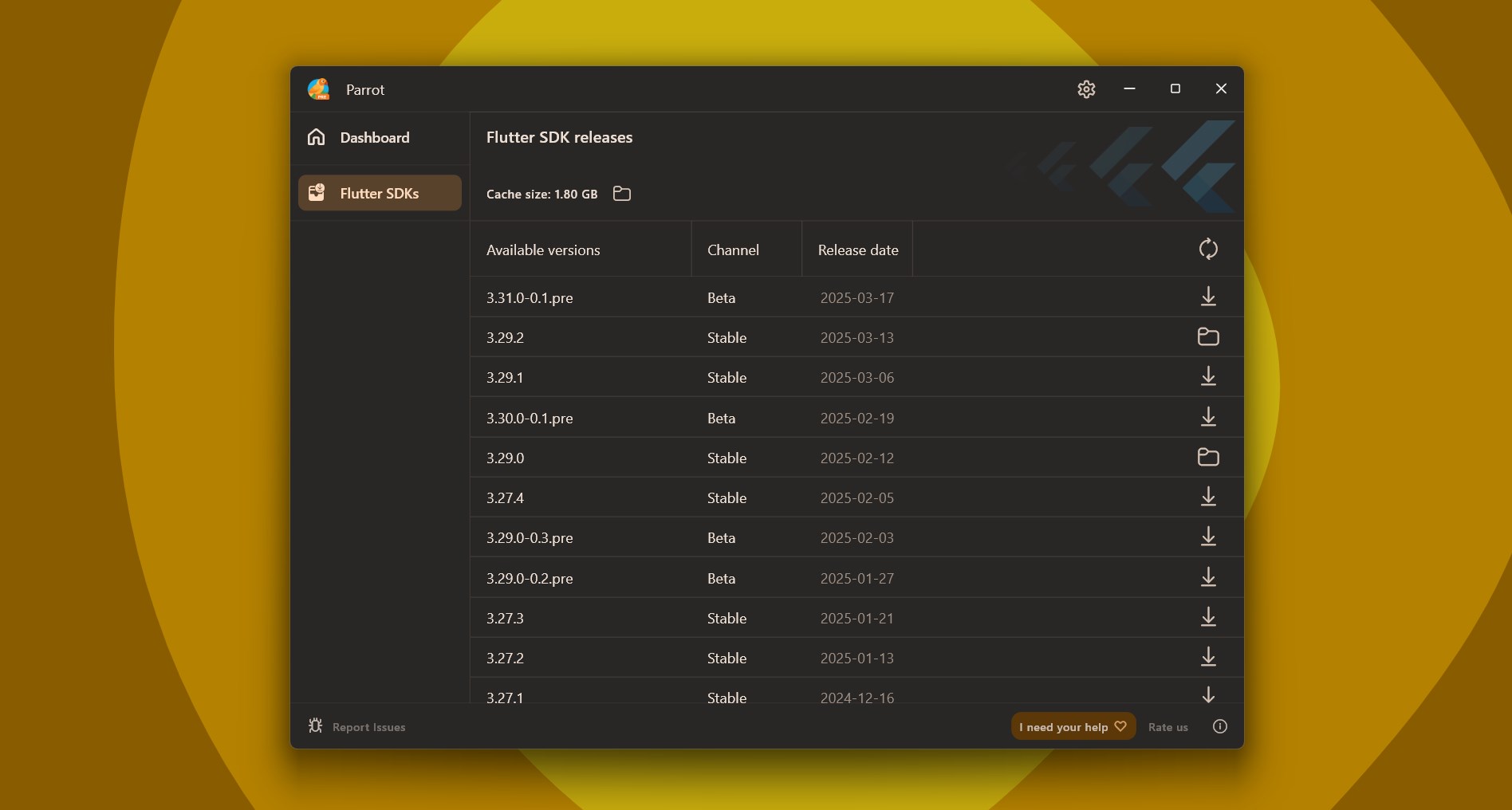 Parrot Pro is a powerful Flutter Version Manager (FVM) app designed to help developers seamlessly switch between different Flutter SDK versions for their projects. Parrot Pro offers an intuitive and user-friendly interface, making it easy to manage multiple Flutter versions effortlessly.