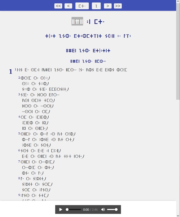 This is the official translation of the New Testament (or Linjil, or Elinjil) as used in the printed version in shifinagh with audio.