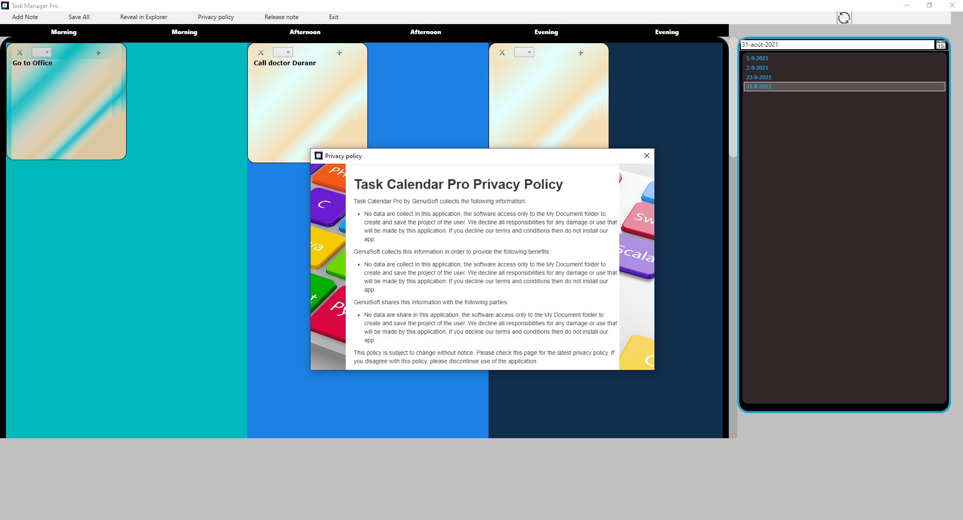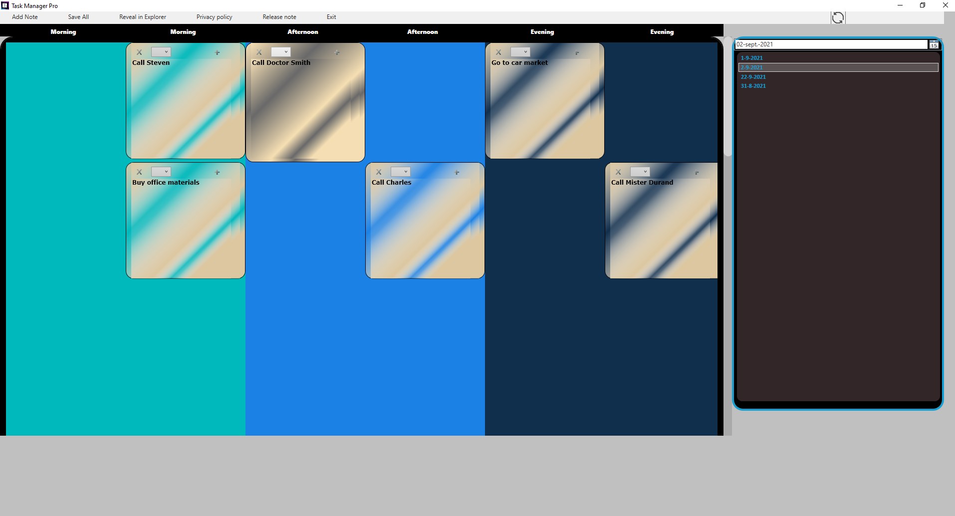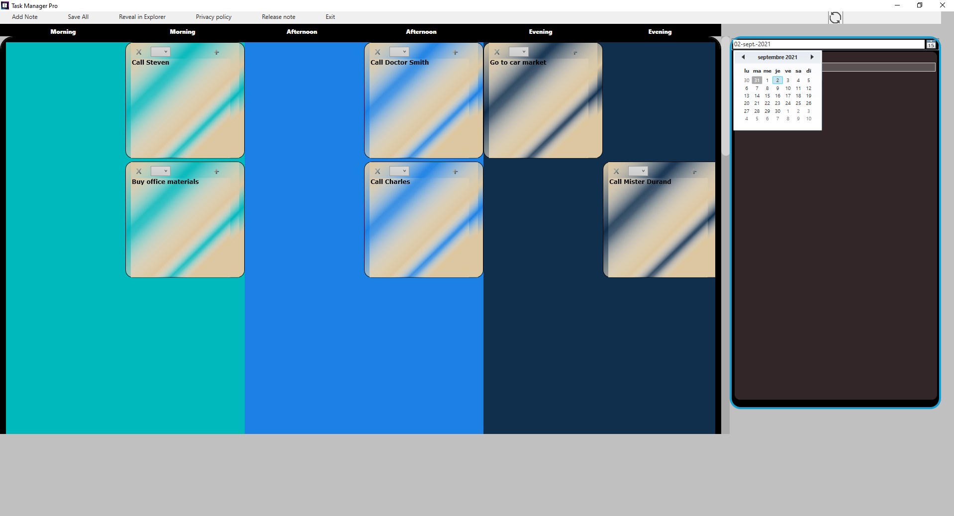 This application will allow you to create your task calendar on your dashboard. You will be able to create and manage your tasks in the form of customizable notes, customize and create your task post-it.