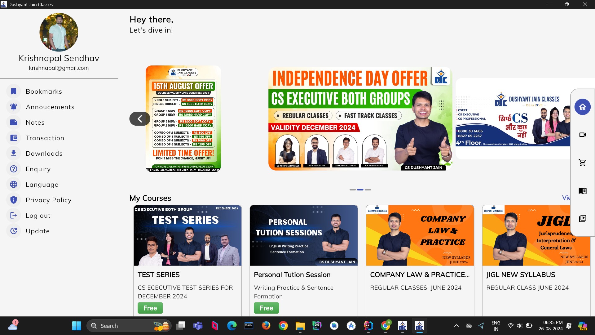 Introducing Dushyant Jain Classes: Your go-to app for Company Secretary exam preparation in India. Our Windows app is designed specifically for CS aspirants, offering easy-to-understand study materials and interactive learning tools. Stay updated with the latest syllabus and exam patterns, and get helpful tips from experts. With everything you need right at your fingertips, you can study confidently and effectively. Download the app today and start your journey towards success in your CS exams!