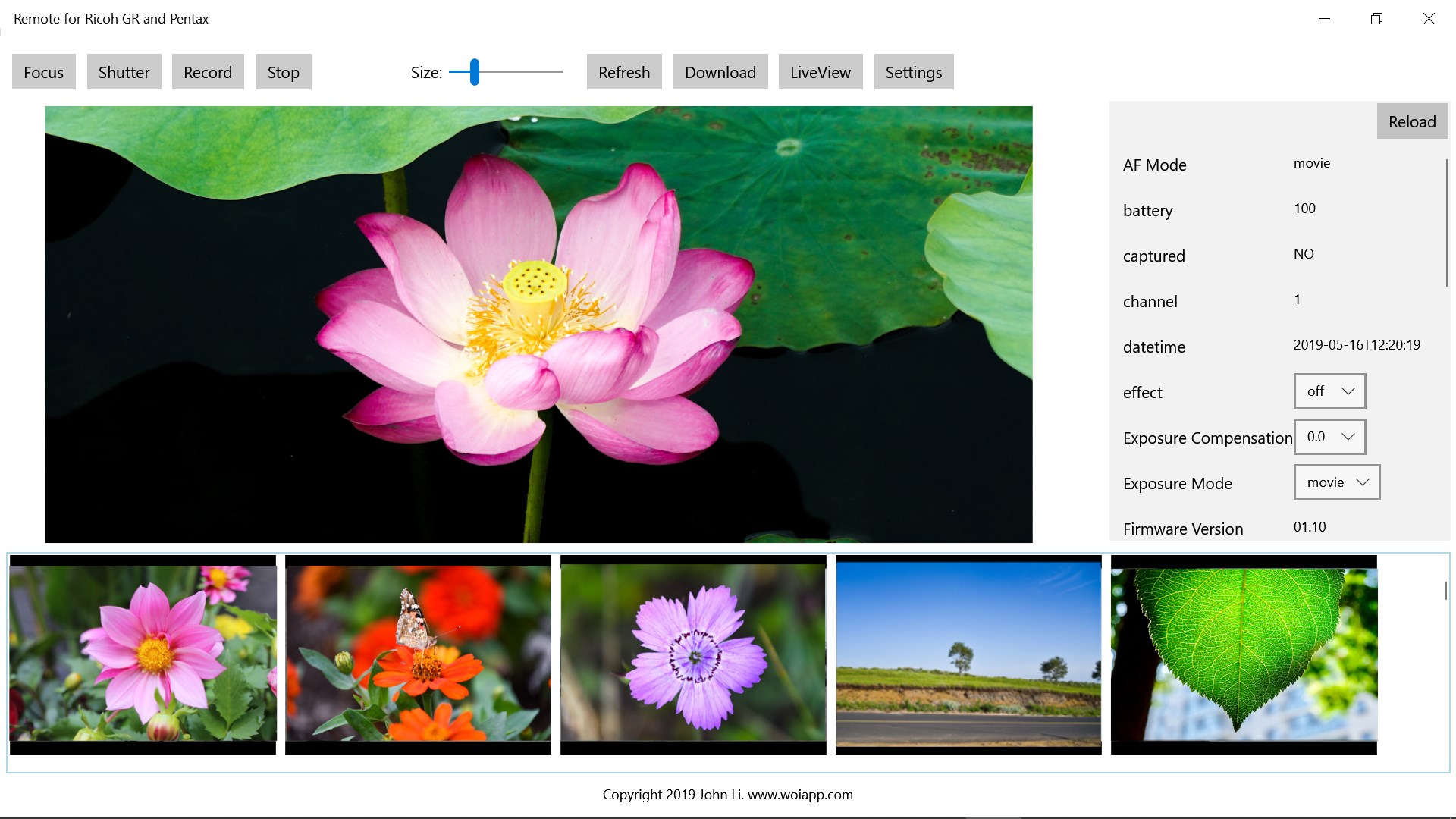 Remote control Ricoh GR II, the new released GR III, and Pentax Cameras, wirelessly download photo and video, live view and remote trigger on your PC.