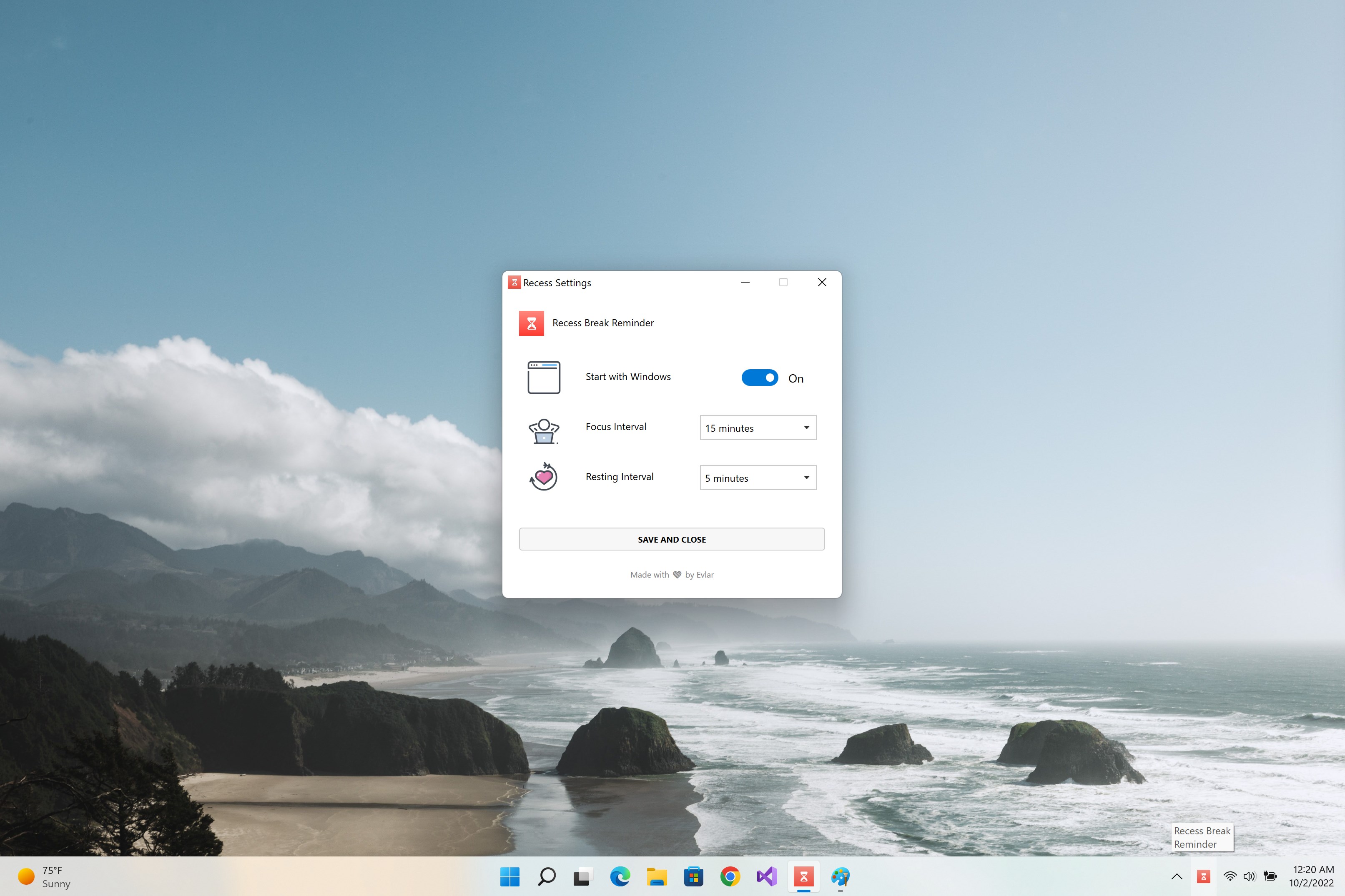 ⚙️ Automatic Startup: The app launches with Windows, ensuring your break schedule is always active.