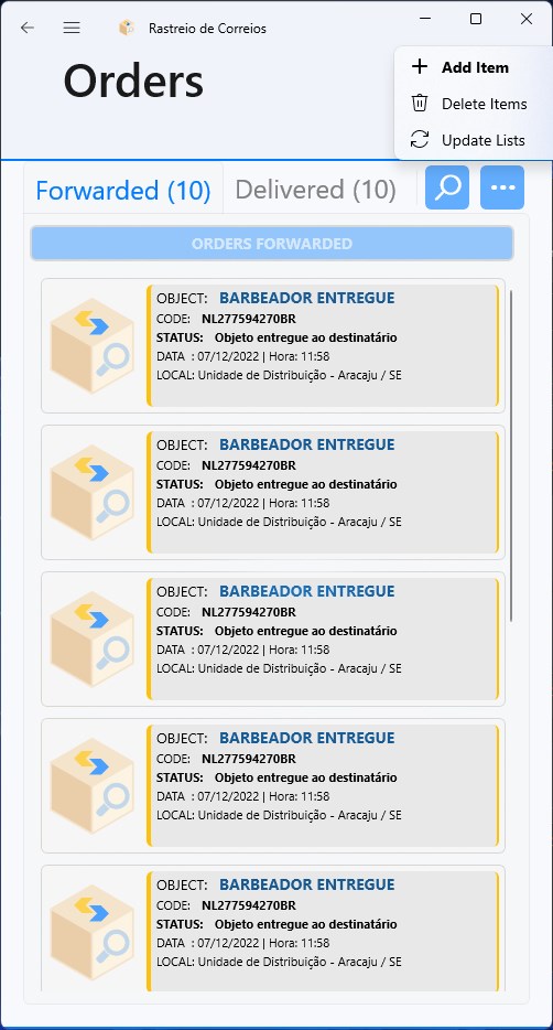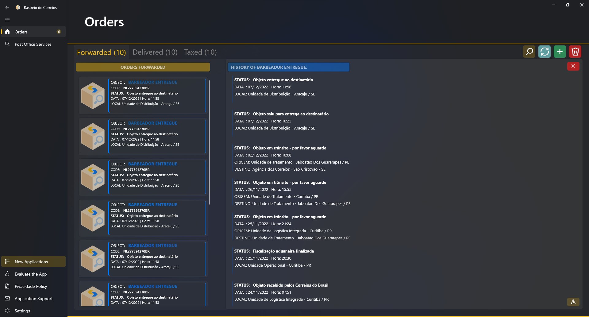 Now with an improved look, you can see status of orders that are from the Post Office of Brazil.