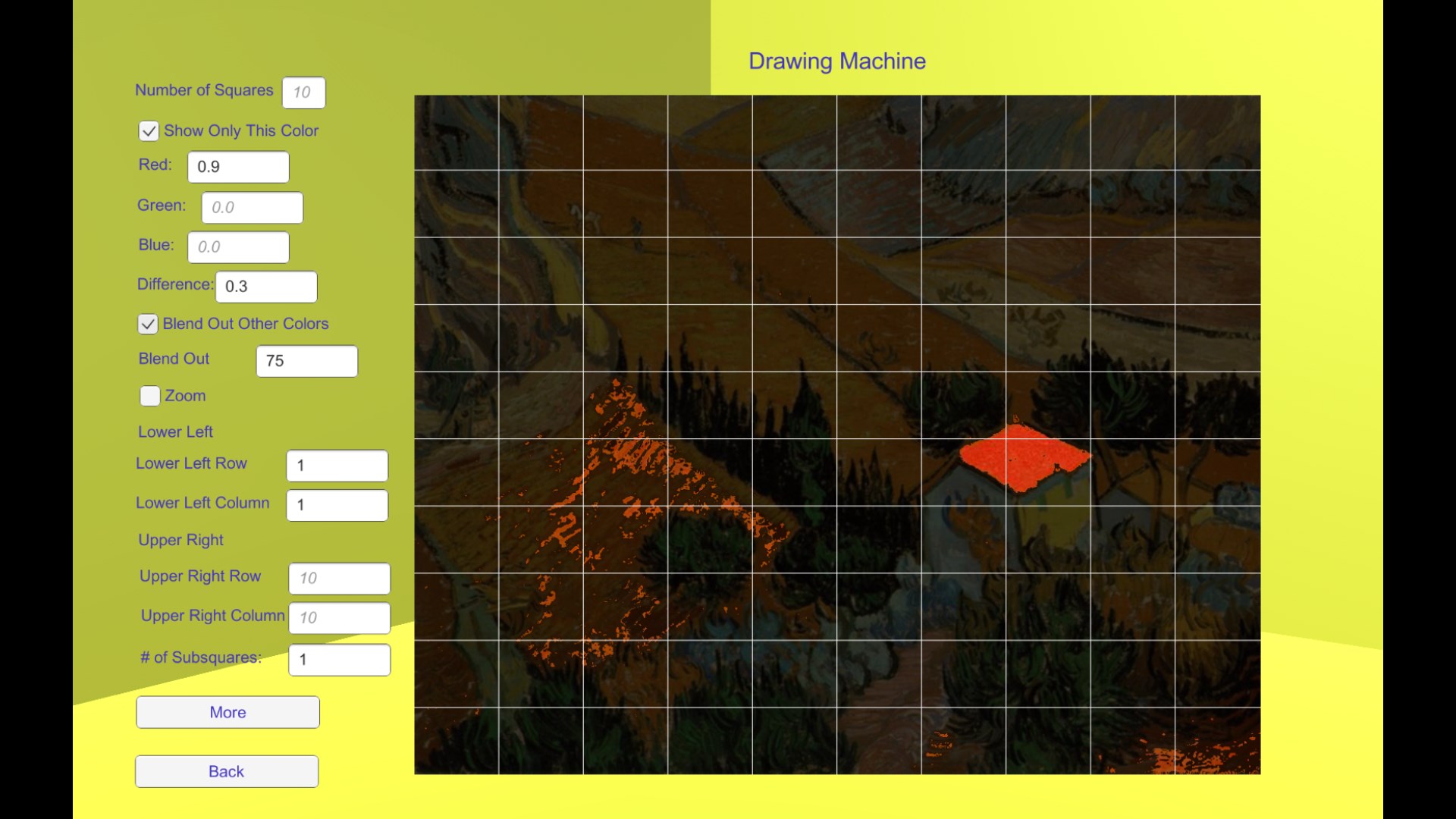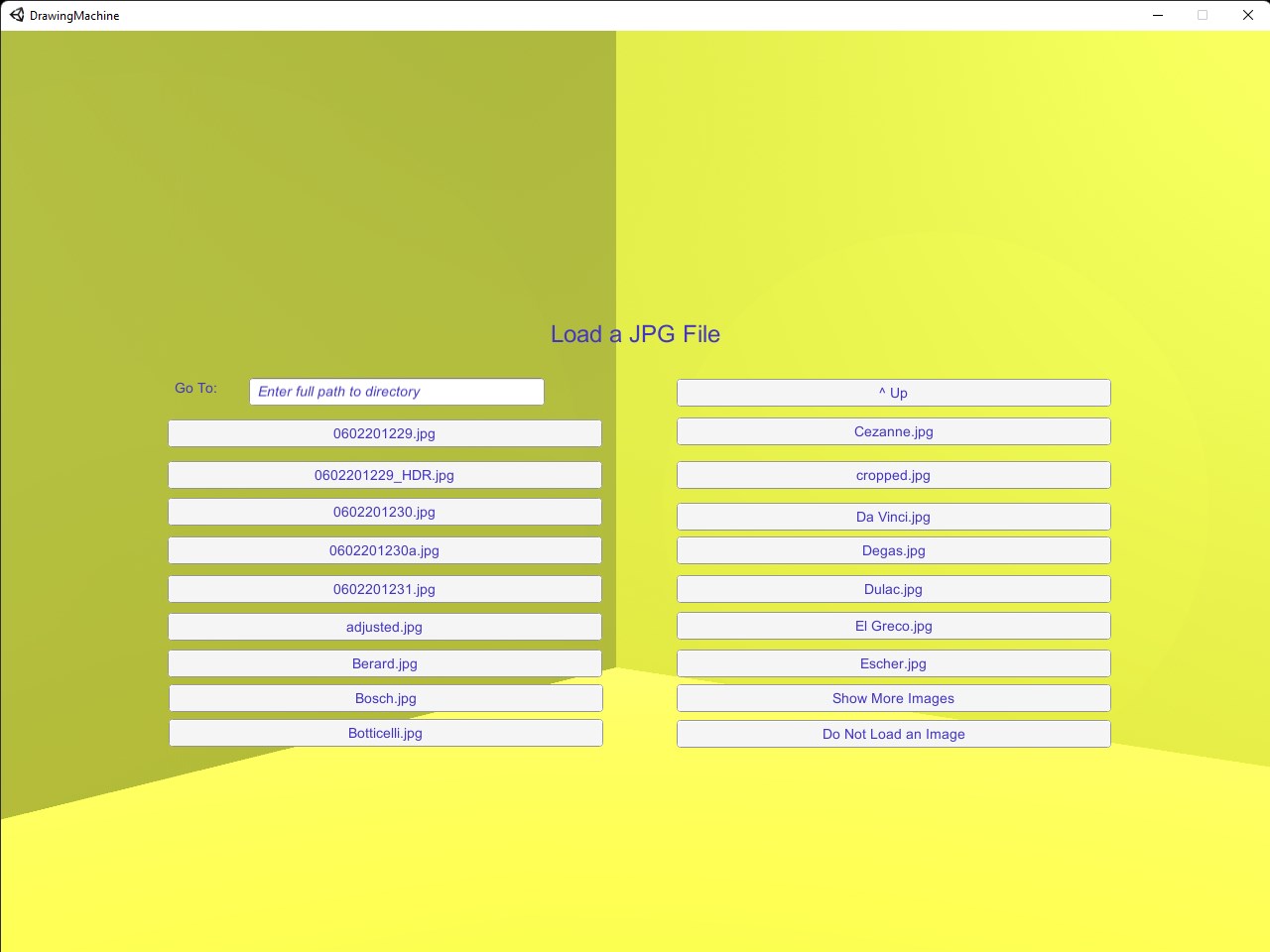 In 1525 Durer invented his drawing machine. It is a way to mechanically produce a picture. Drawing Machine is an implementation of this technique on a desktop that helps you draw a picture. This app will help you learn to draw. As your skill improves you can use the app less and less as you develop the proper mental repertoire for drawing pictures. This app is "Divide and Conquer" as it can be applied to drawing.