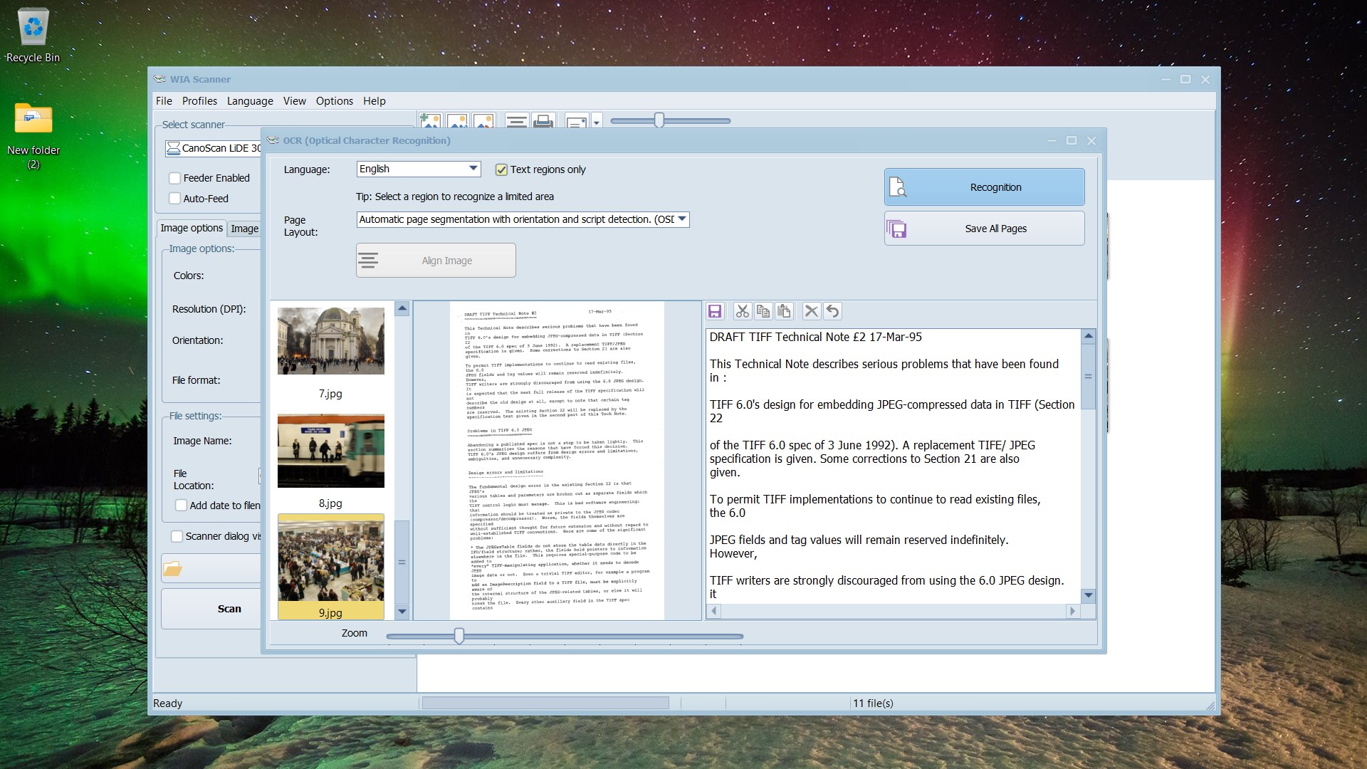 Scan and preview settings: set color (color, black & white, gray-scale), resolution, and size of output images.Image correction options: Auto sharpness, Improvement of contrast and colors, Auto image enhance, Enhance luminosity, Unsharp mask, Auto white balance, Sharpen.Save scanned images as PDF, BMP, JPG, TIFF, or PNG imagesSupport of ADF (auto document feeder) and duplex scanningSave scan settings to profilesCrop, rotate, sharpen, adjust colors, apply various image effectRemove Red-EyesSave scanned documents as a multi-page PDFConvert imported and scanned images or PDF files to editable text filesSave recognized text to DOCX, RTF or TXT formats (all pages or individually)OCR for 15 languages