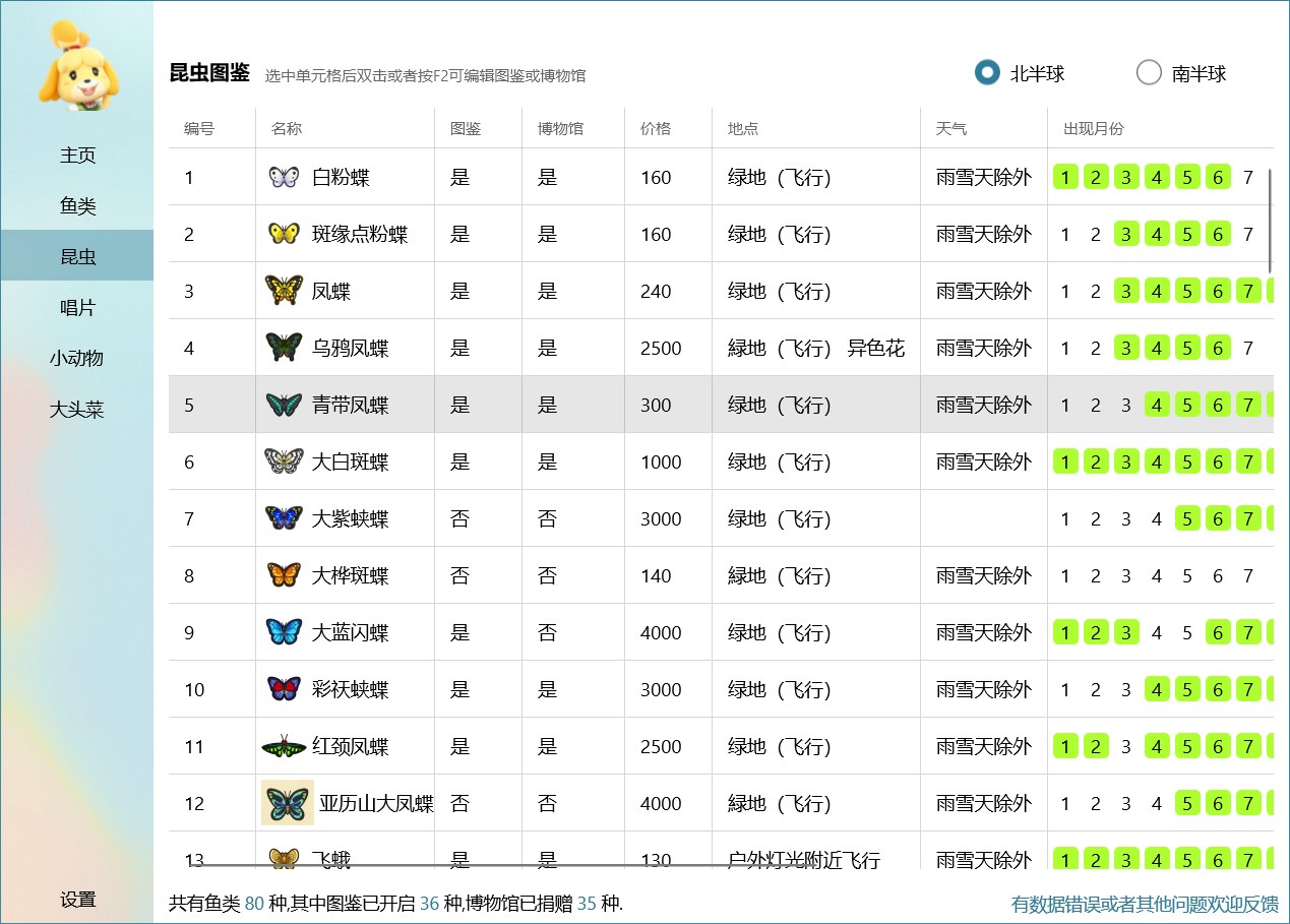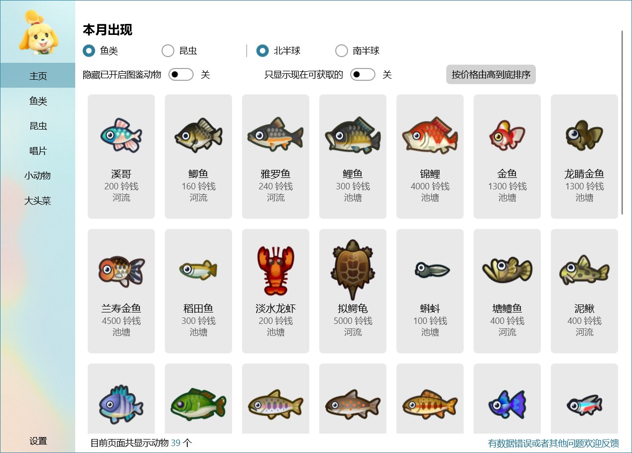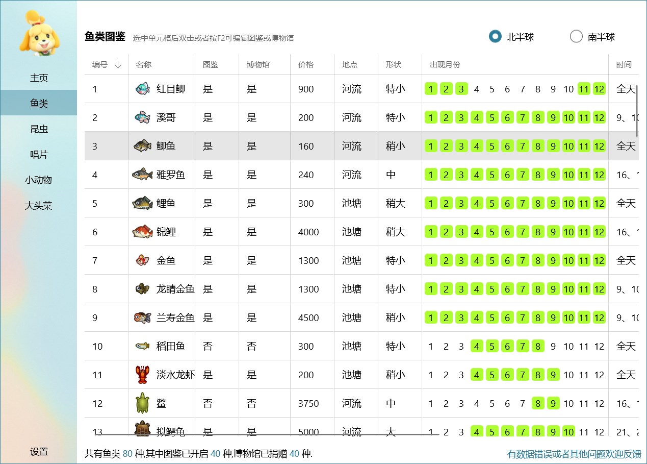 集合啦!动物森友会的图鉴,基本数据基于哔哩哔哩游戏Wiki。