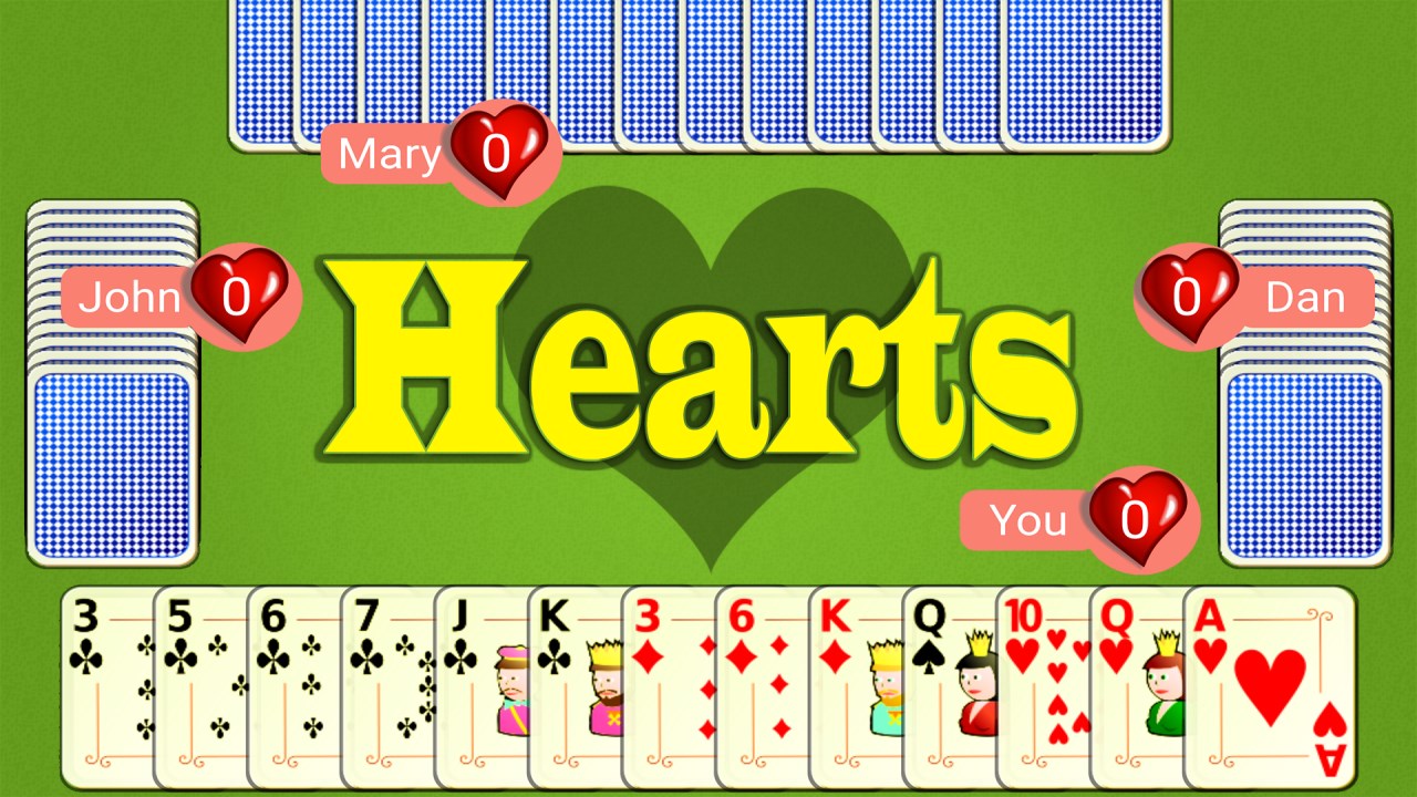 Play a captivating game of Hearts. To win you must avoid getting the scoring cards. Or you can Shoot the Moon. The game is over when one of the four players gains more or exactly 100 points. You win if you have the smallest score. Though chance is involved you can still make the best of your cards and win.