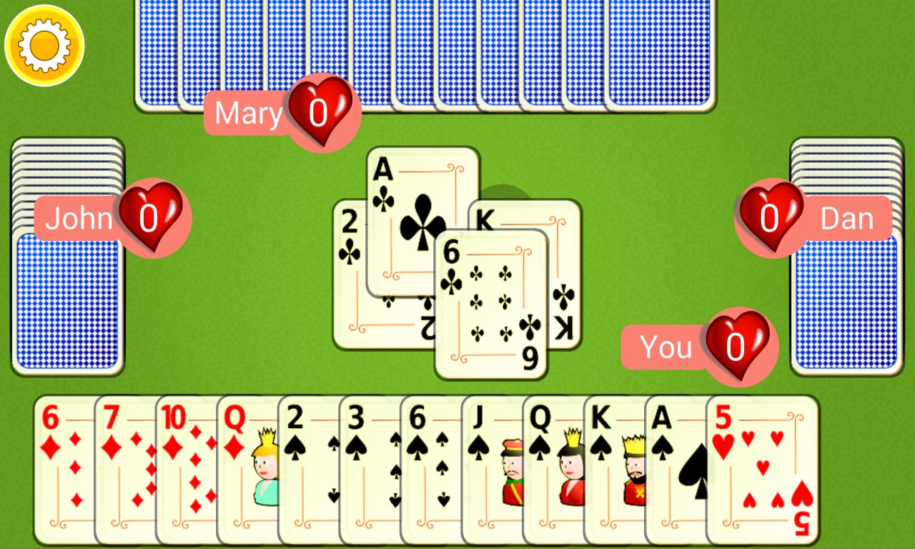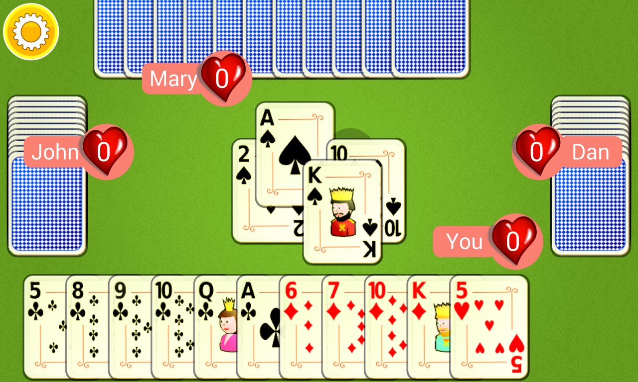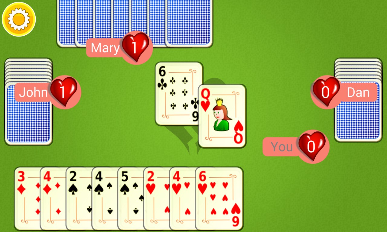 Play a captivating game of Hearts.Though chance is involved you can still make the best of your cards and win.Advanced AI players 3 Difficulty Levels