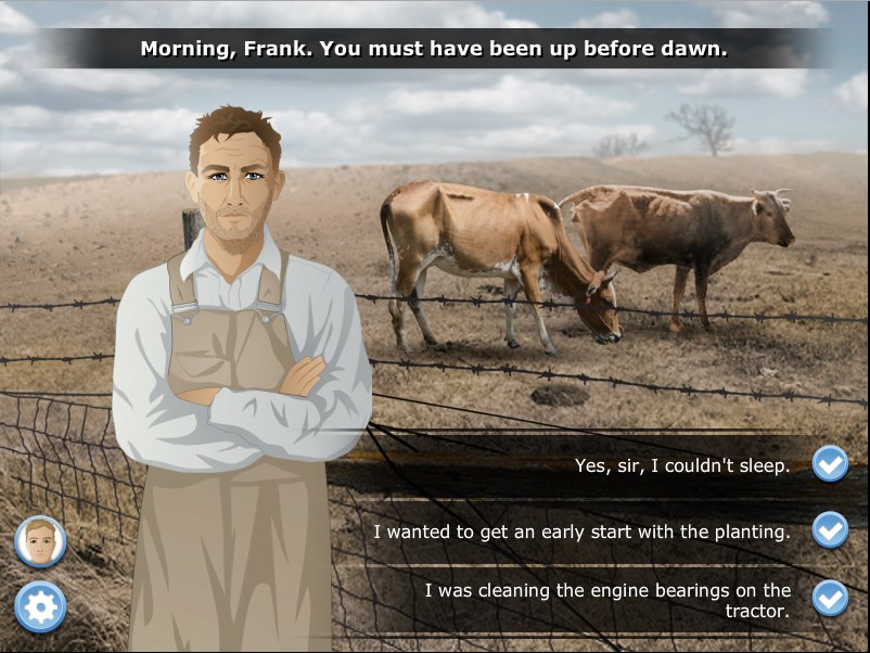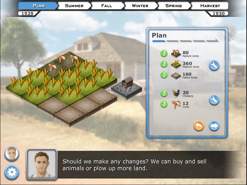 Play alternates between two main charactersInnovative choice-driven story with over 20 possible endings and badge systemIncludes interactive prologue, 5 playable parts, and epilogue - approx. 2-2.5 hours of gameplay, segmented for flexible implementation Diverse cast of characters features a range of perspectives on the Depression Farm minigame simulates boom and bust cycle and impact of drought and Depression on local farmers New Deal minigame focuses on government programs that helped ordinary AmericansPrimary source documents and historic photographs are integrated into game designCollection of free classroom support resources available at mission-us.org includes document-based questions, primary sources, class activities, vocabulary builders, standards alignments, and writing