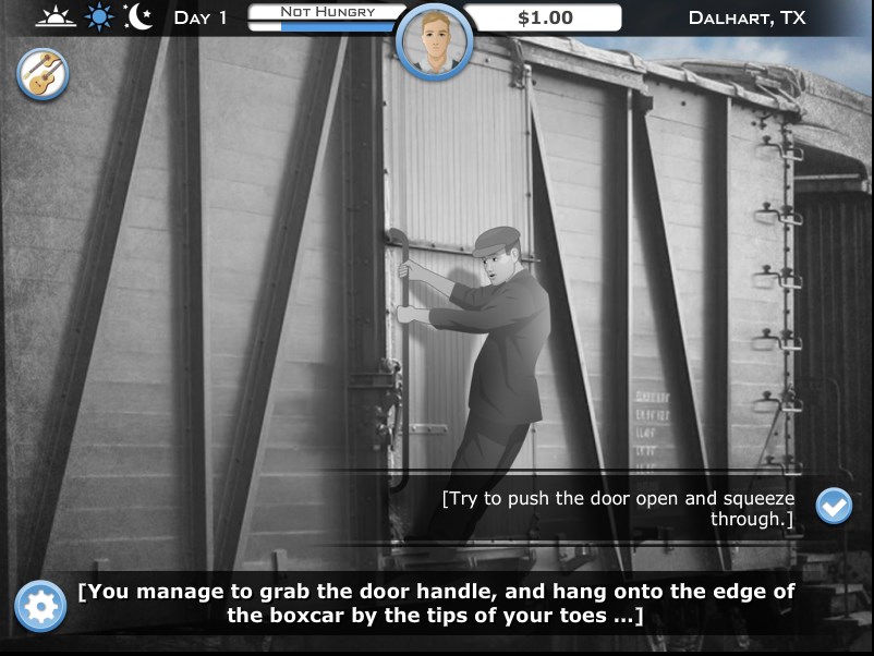 Step into the shoes of Ginny and Frank Dunn, 13-year-old twins in 1930s Texas. Prospects for survival on your family wheat farm are grim. How will you weather the impending devastation of the Great Depression and Dust Bowl? As Frank, you can ride the rails around the country in search of work and adventure. As Ginny, you can help others find aid and work through New Deal programs, and travel west to assist famed photographer Dorothea Lange. Alternating between Frank and Ginny’s viewpoints, you will meet people from many different walks of life, experiencing and overcoming the daunting challenges many Americans faced in these hard times.