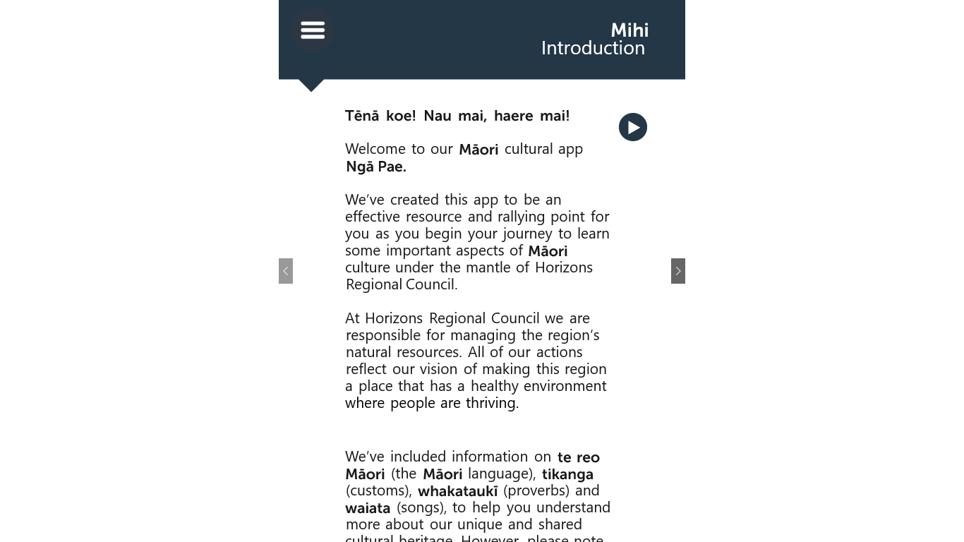 We’ve created this app to be an effective resource and rallying point for you as you begin your journey to learn some important aspects of Māori culture under the mantle of Horizons Regional Council.