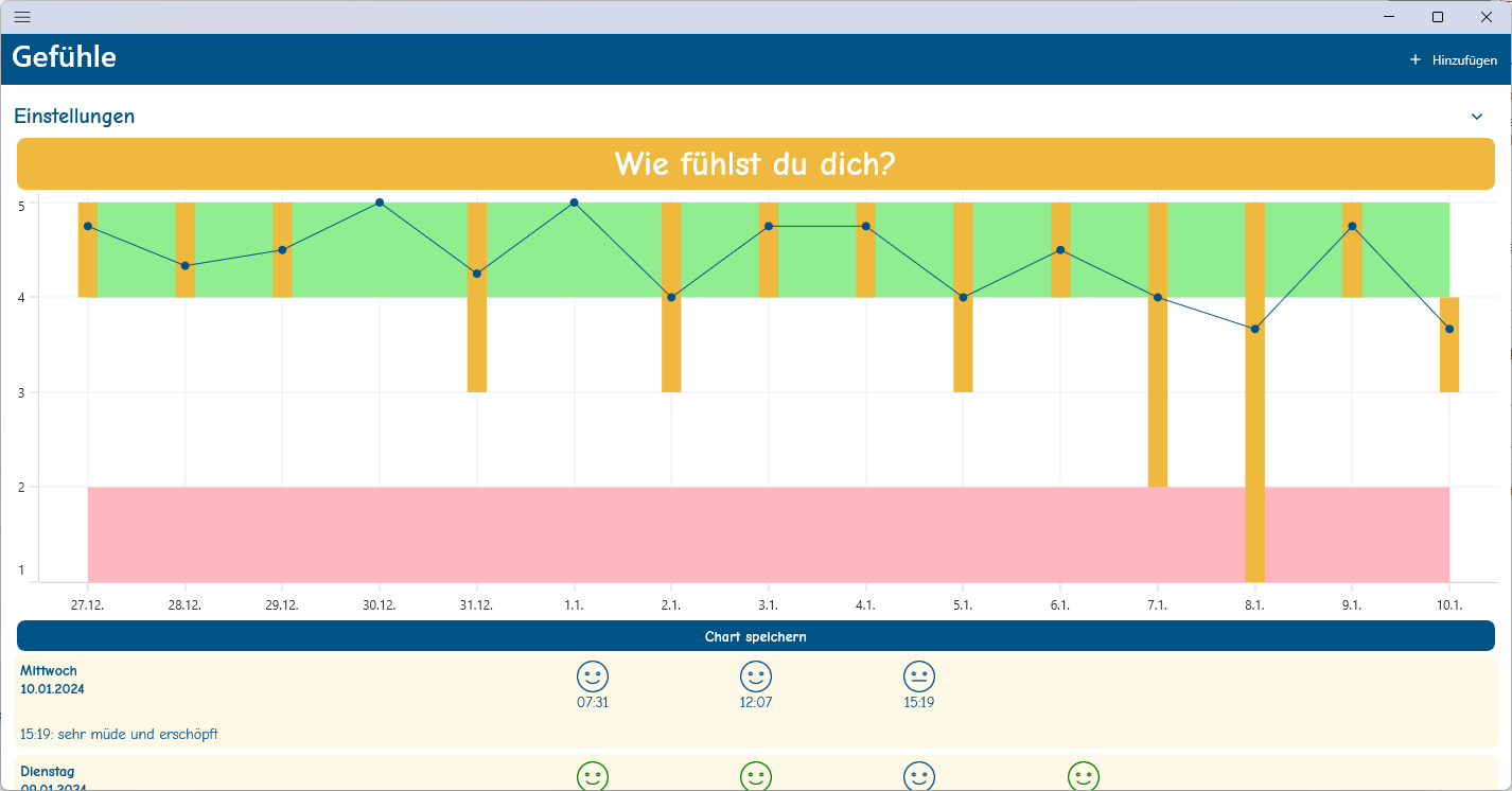 Das regelmässige und gelegentliche Notieren der aktuellen Emotionen, Gefühle und Stimmung hilft einem, die positiven Momente bewusster wahrzunehmen und die negativen Momente besser zu verstehen.