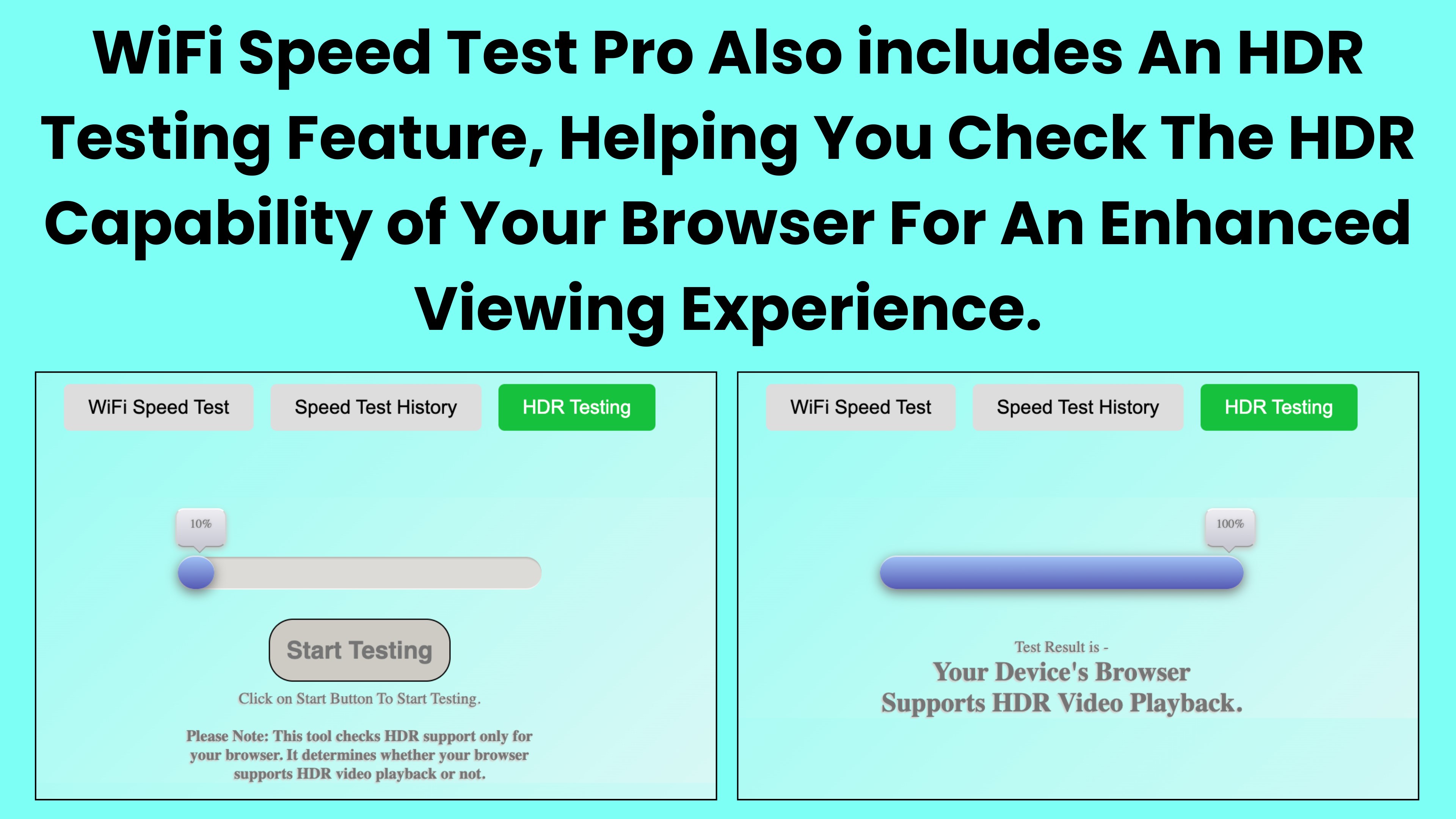 WiFi Speed Test Pro also includes an HDR testing feature, helping you check the HDR capability of your browser for an enhanced viewing experience.