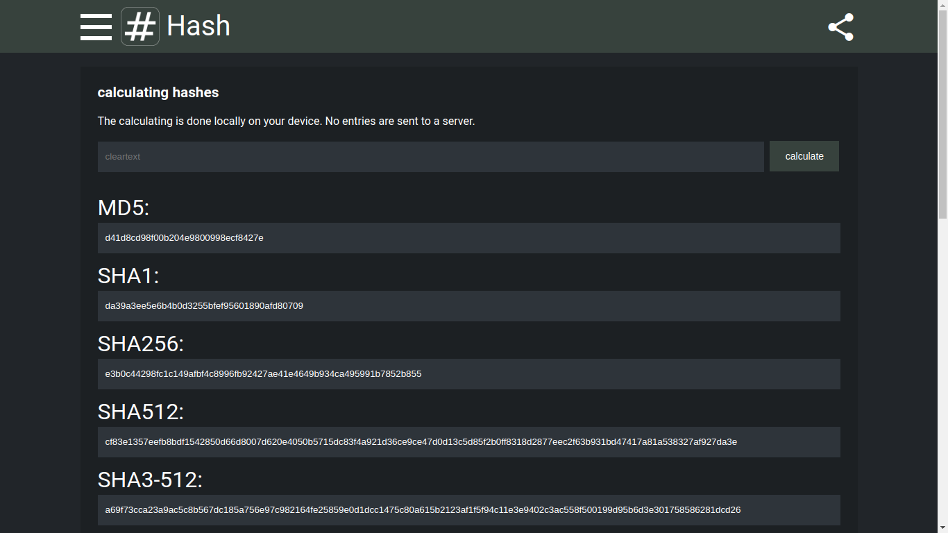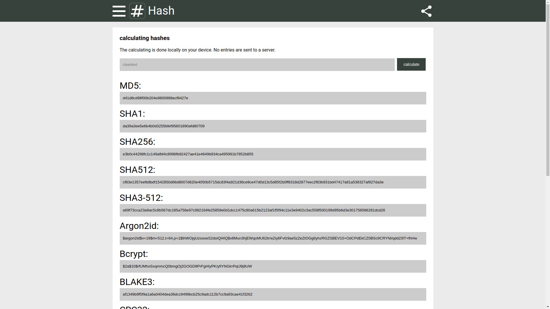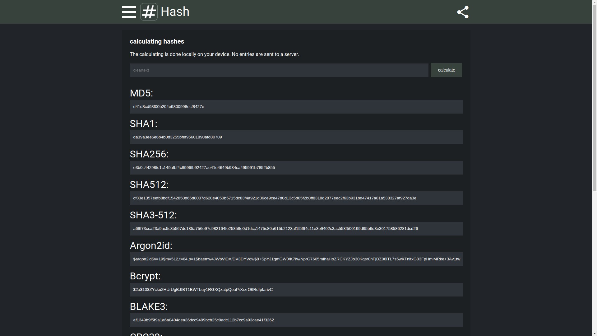 hashgeneratorcheckersha1sha3sha256sha512whirlpoolblake3bcryptmd5PBKDF2hmac